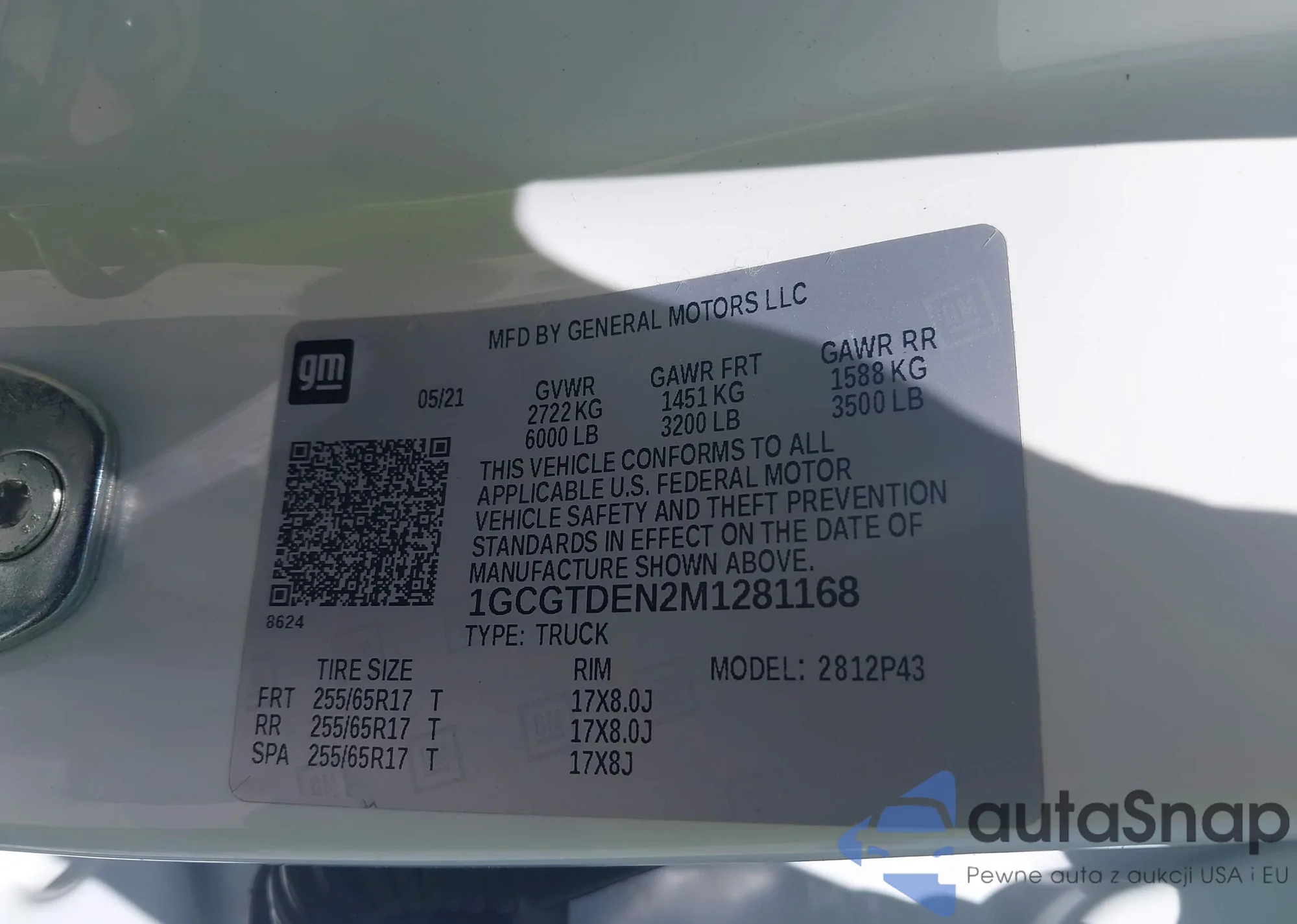 • VIN 1GCGTDEN2M1281168
