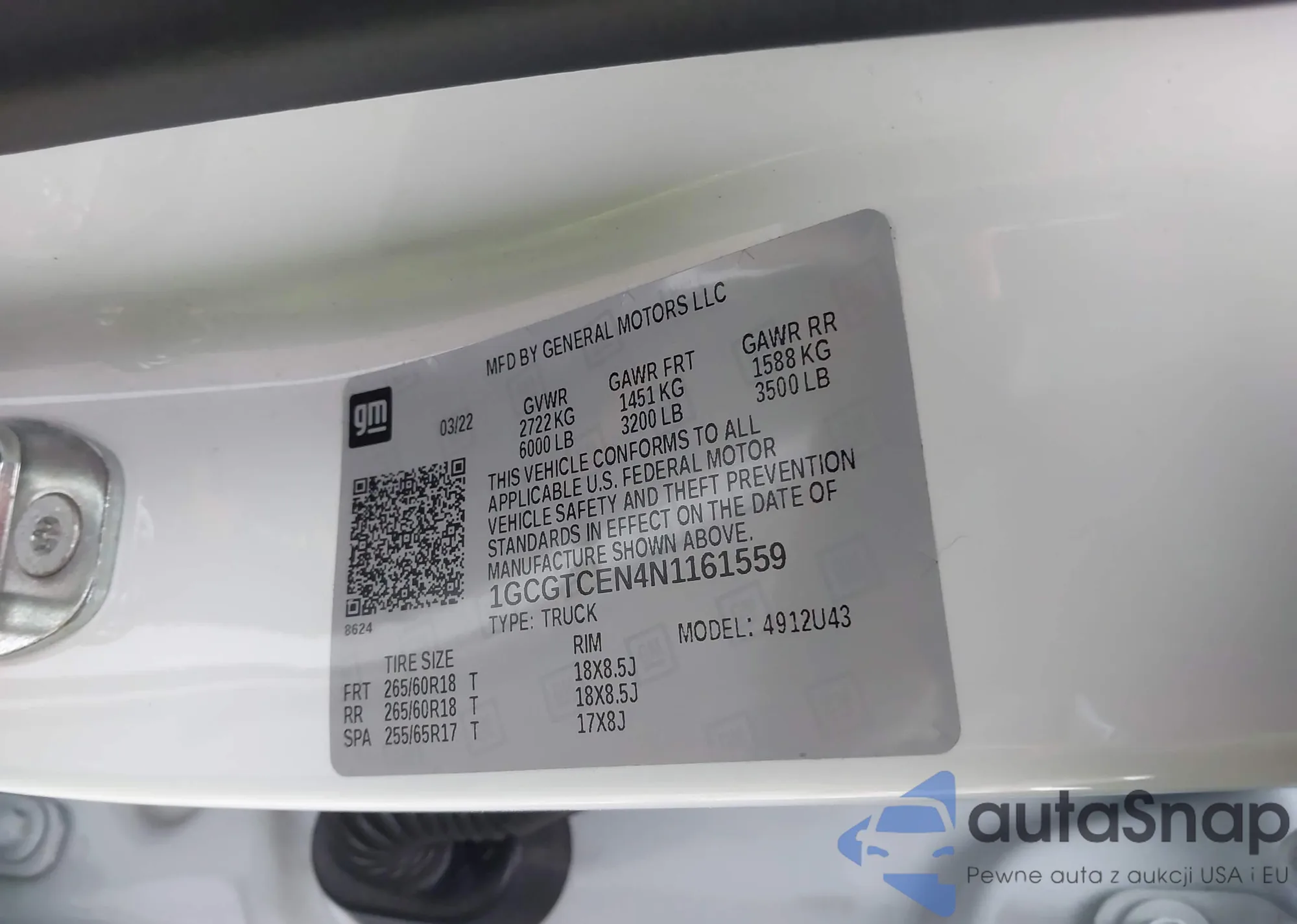 LOT: 43683348 VIN: 1GCGTCEN4N1161559