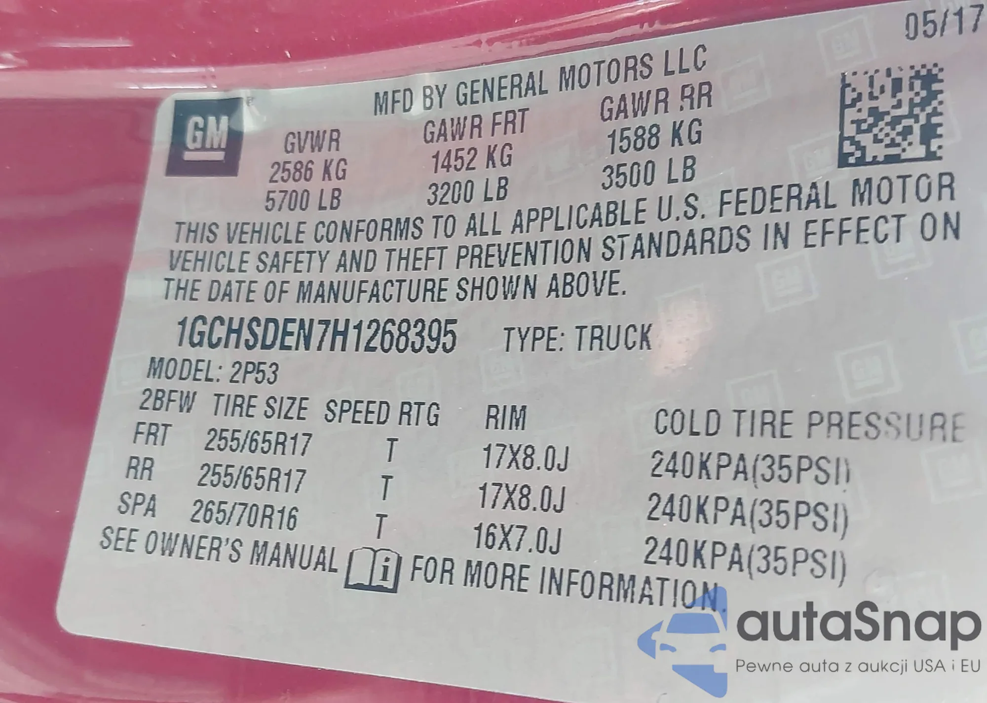 LOT: 43532679 VIN: 1GCHSDEN7H1268395