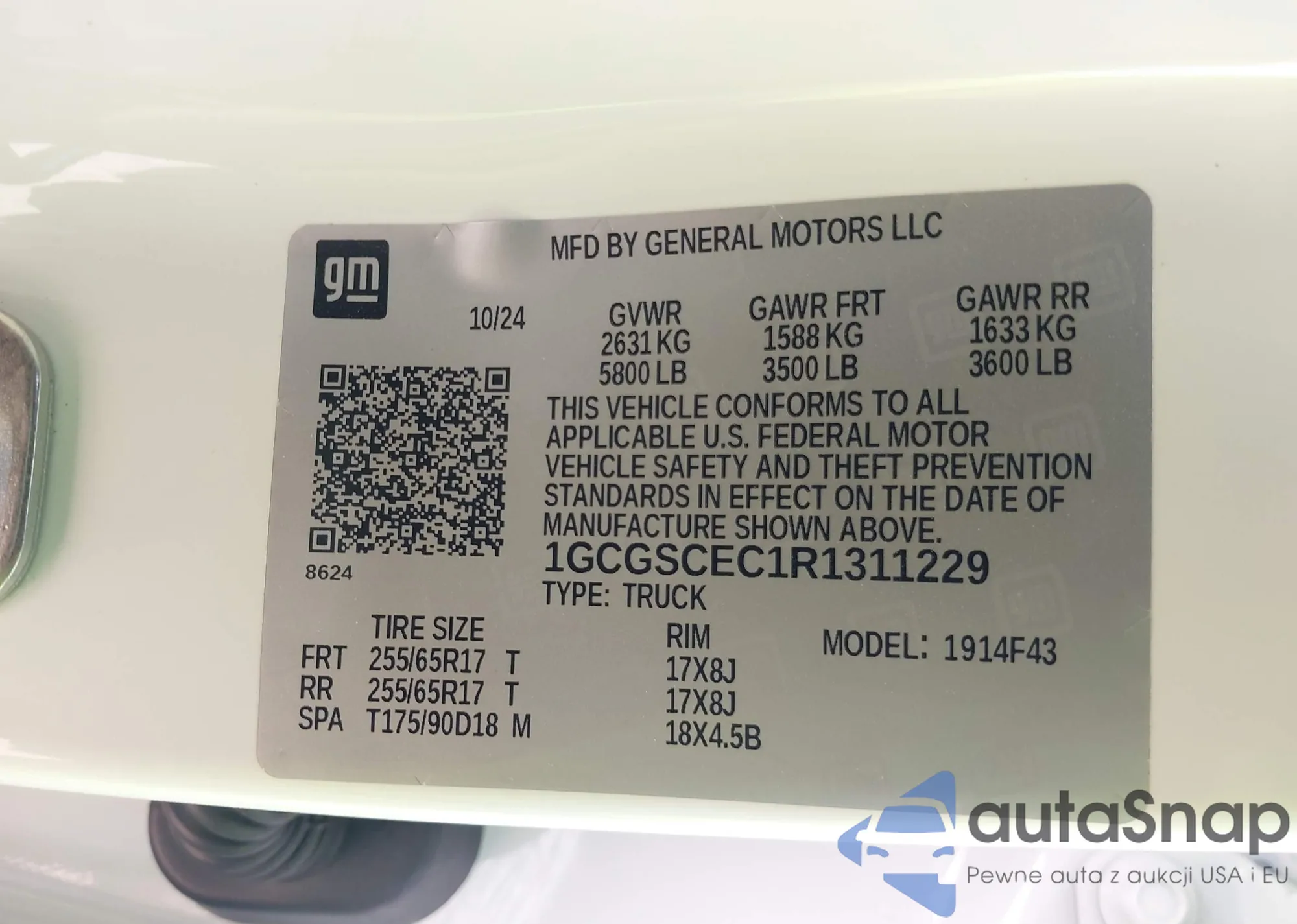 LOT: 43690704 VIN: 1GCGSCEC1R1311229