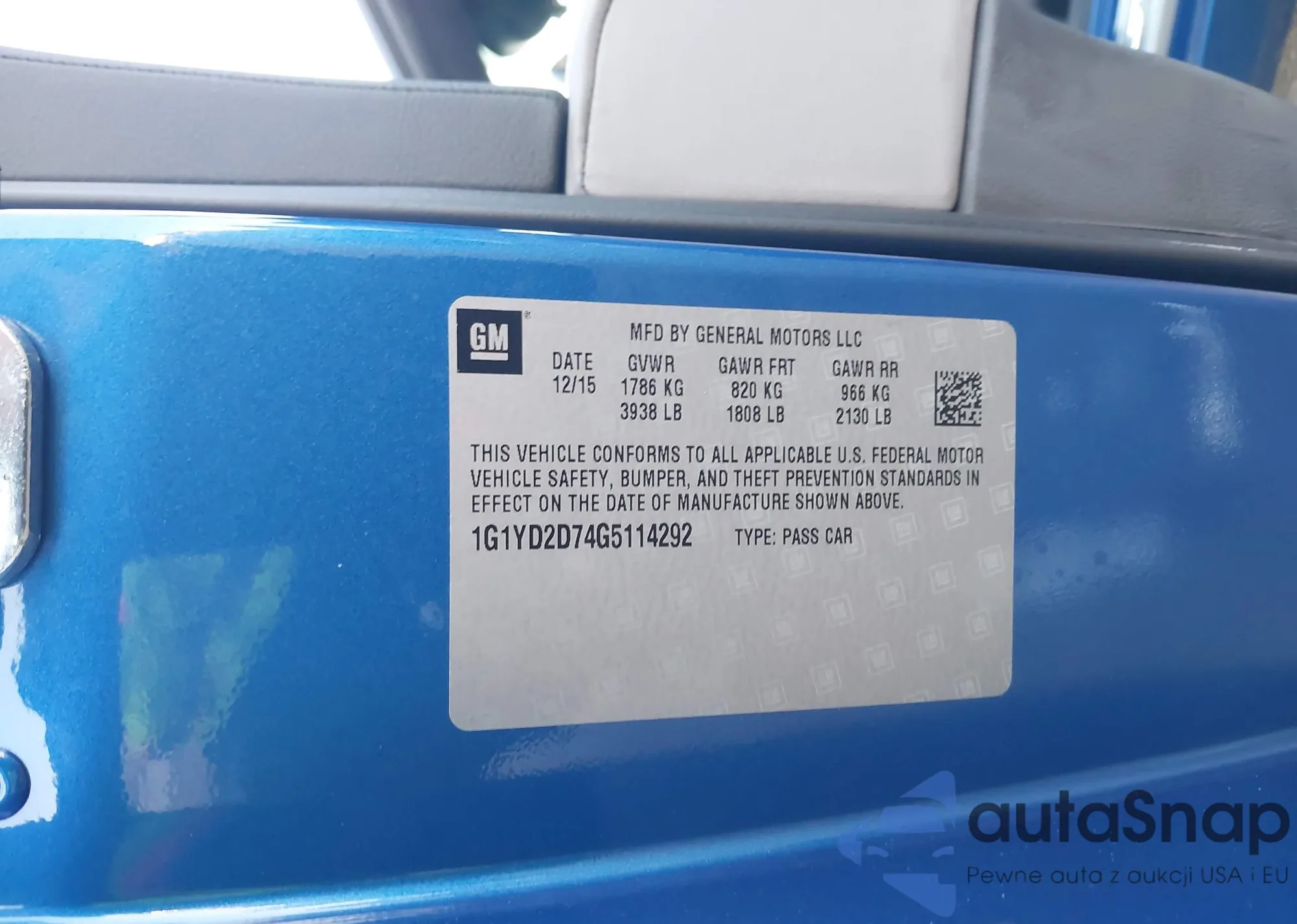 LOT: 44156695 VIN: 1G1YD2D74G5114292