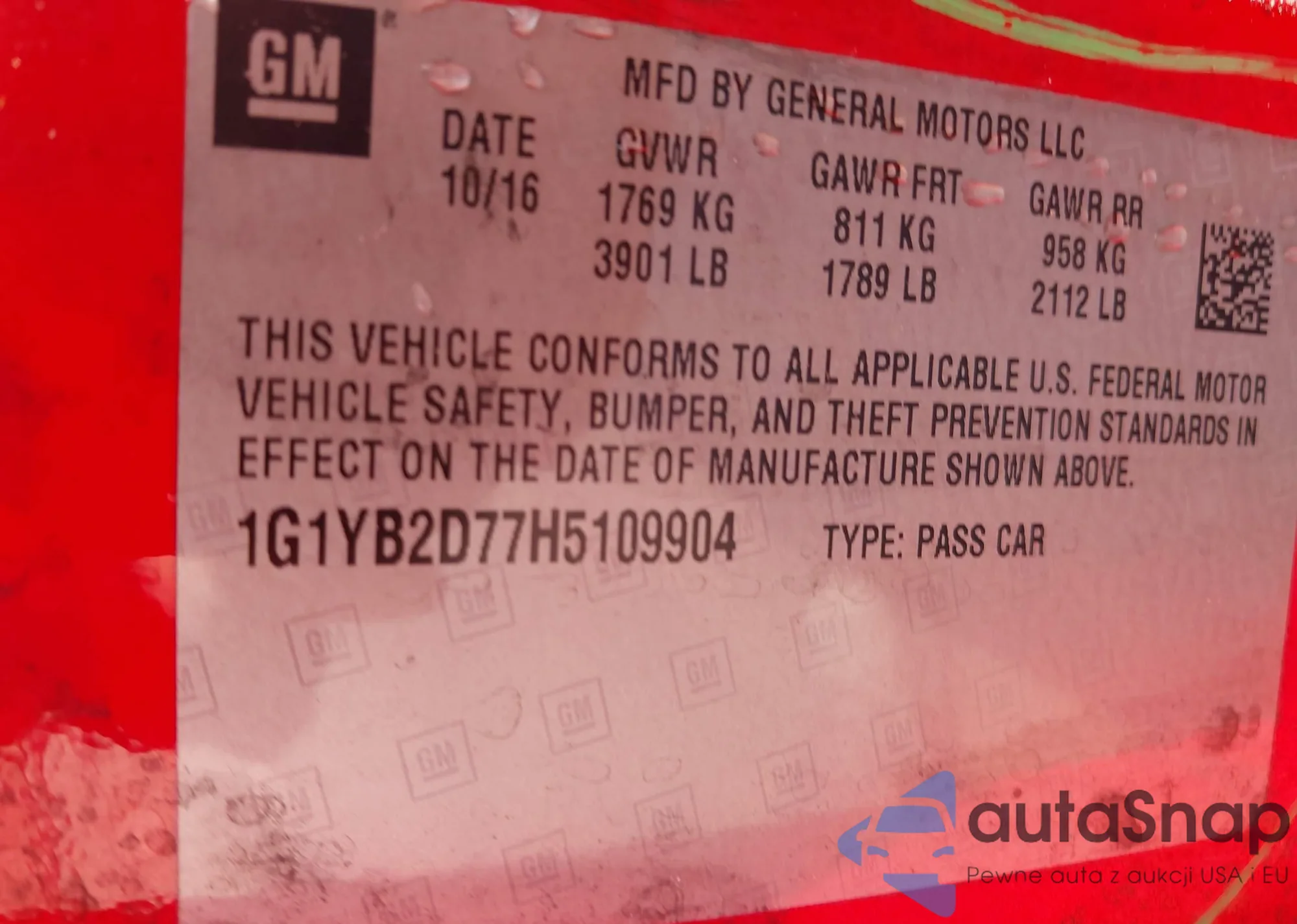 • VIN 1G1YB2D77H5109904