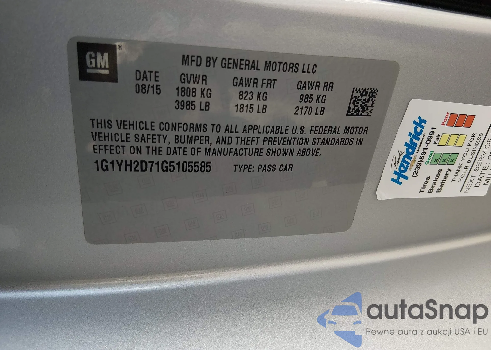 LOT: 47598944 VIN: 1G1YM2D79F5102542
