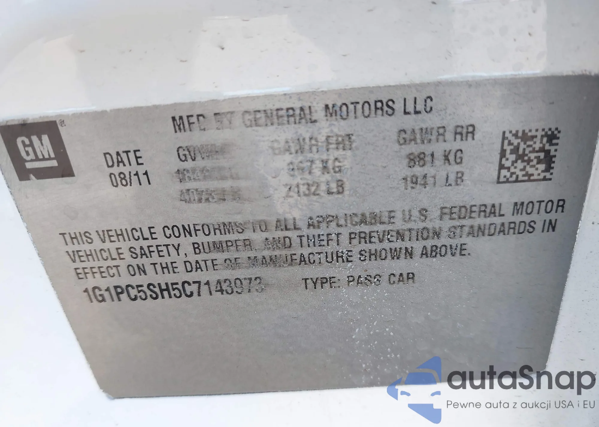 LOT: 43160191 VIN: 1G1PC5SH5C7143973