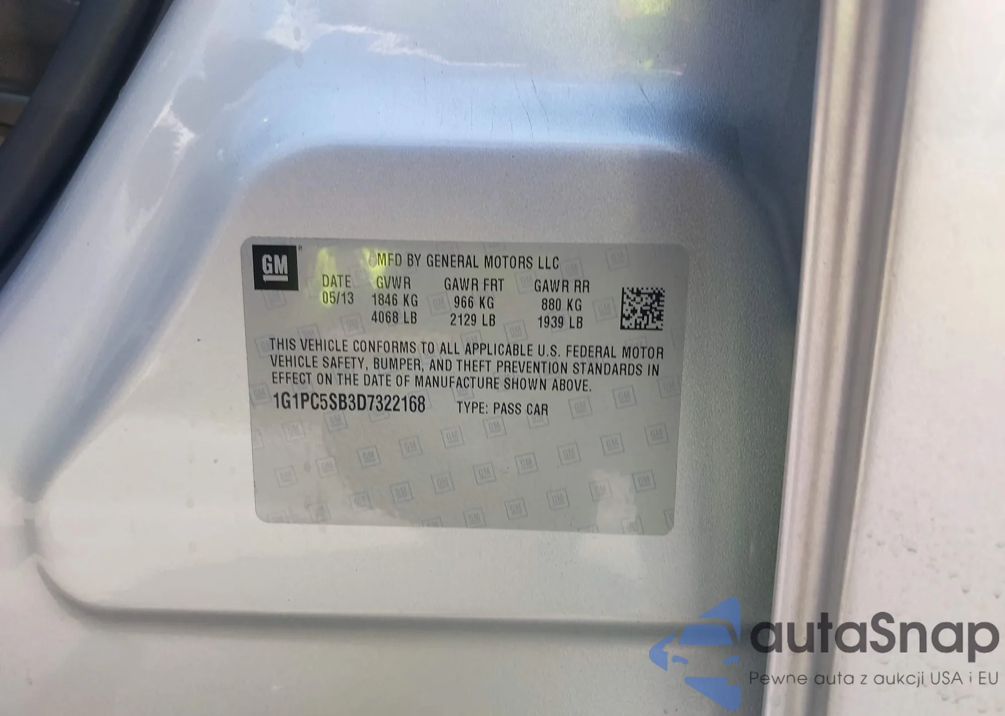 LOT: 42986808 VIN: 1G1PC5SB3D7322168