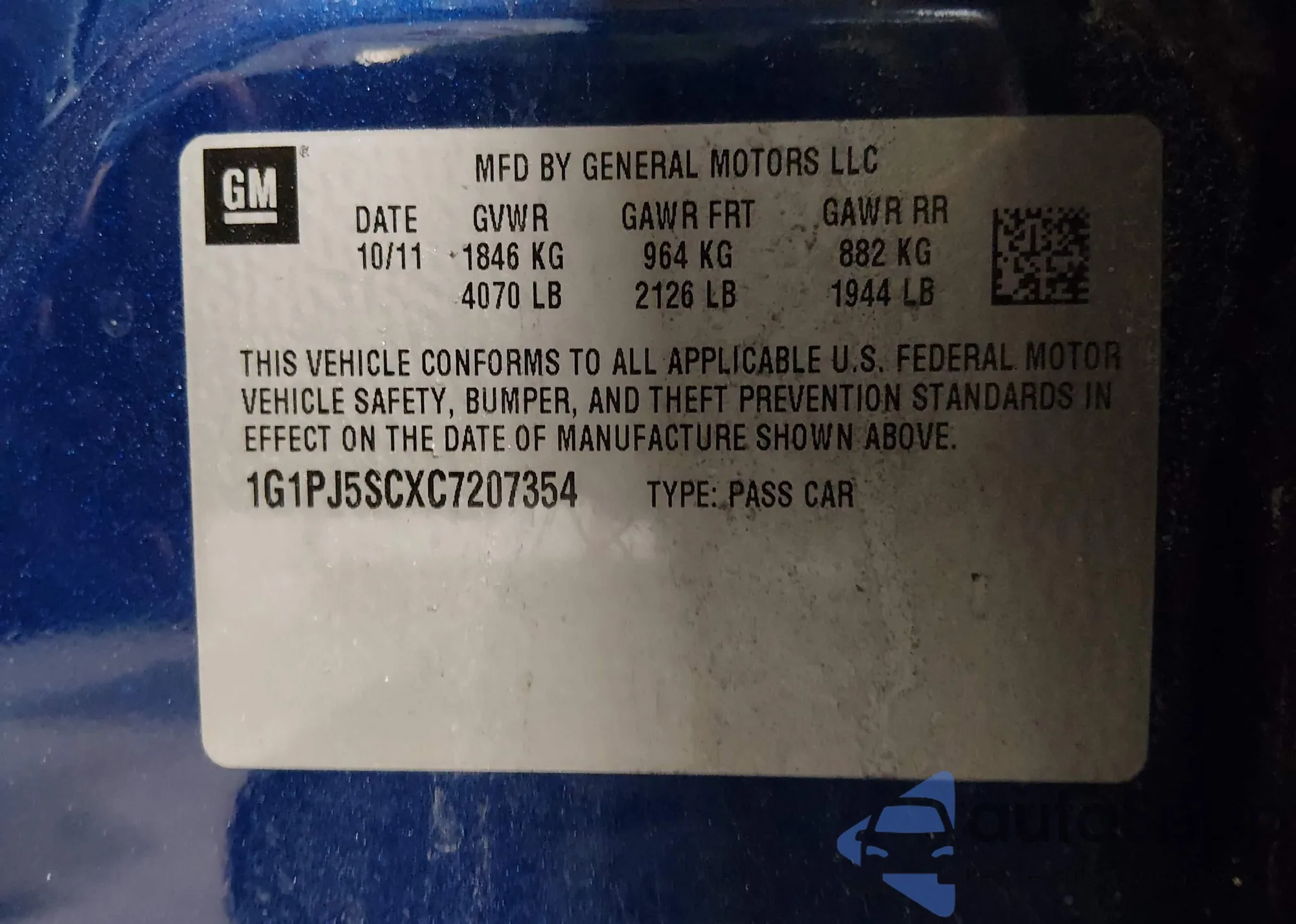• VIN 1G1PA5SH8D7305036