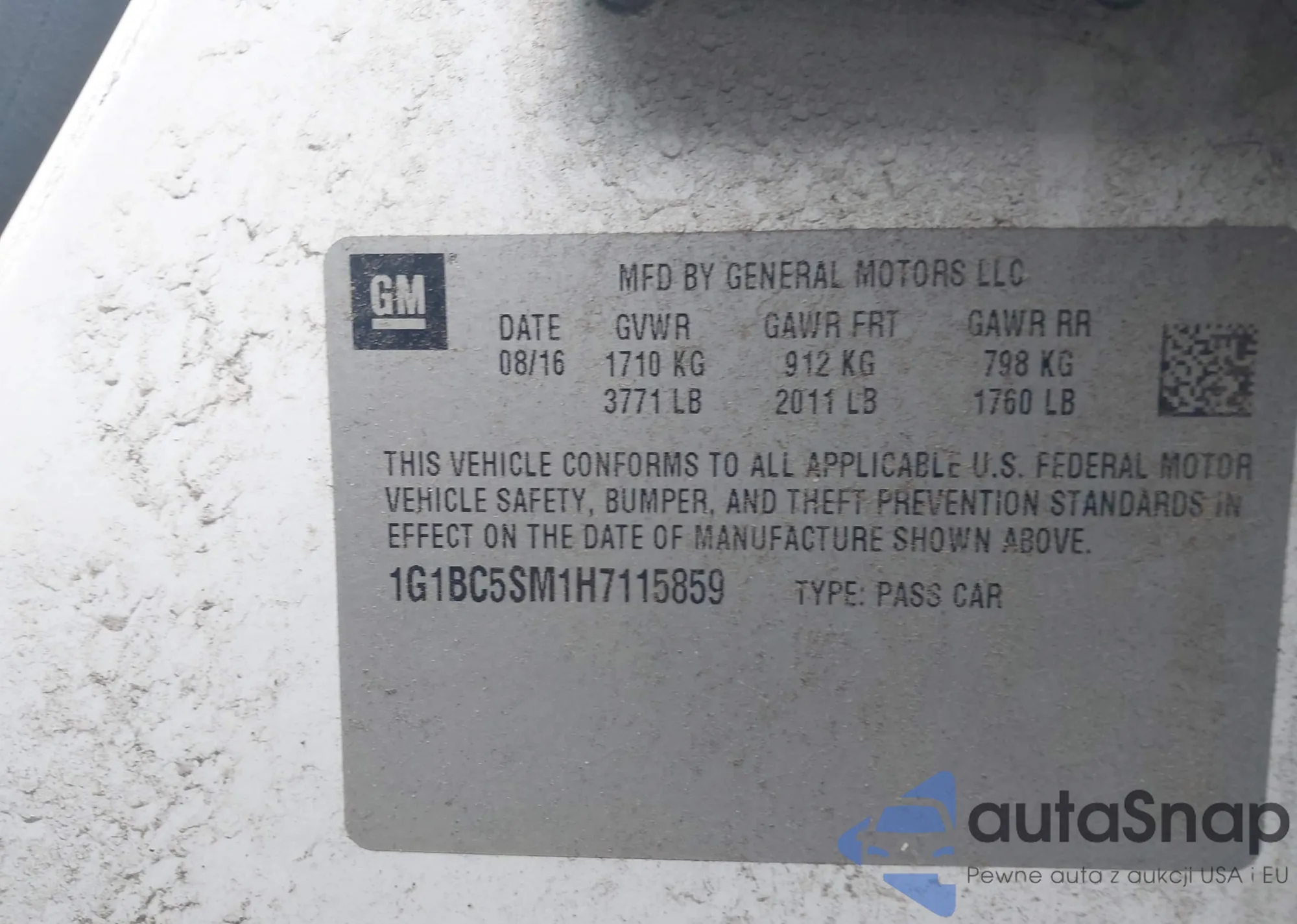 LOT: 43565124 VIN: 1G1BE5SM4H7117745