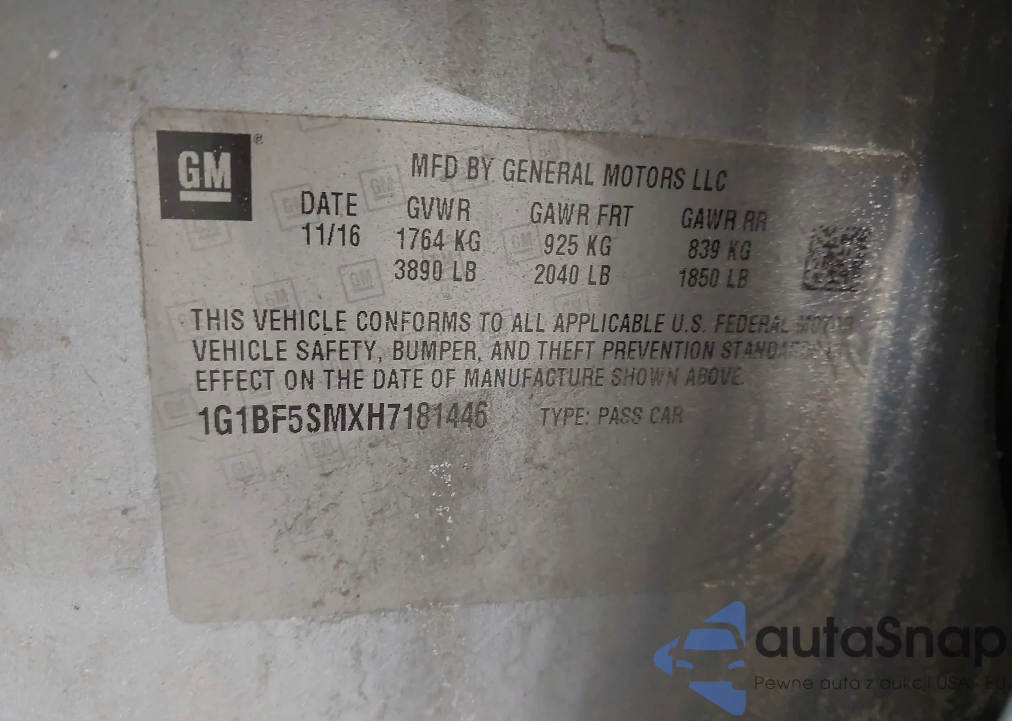 • VIN 1G1BF5SMXH7181446