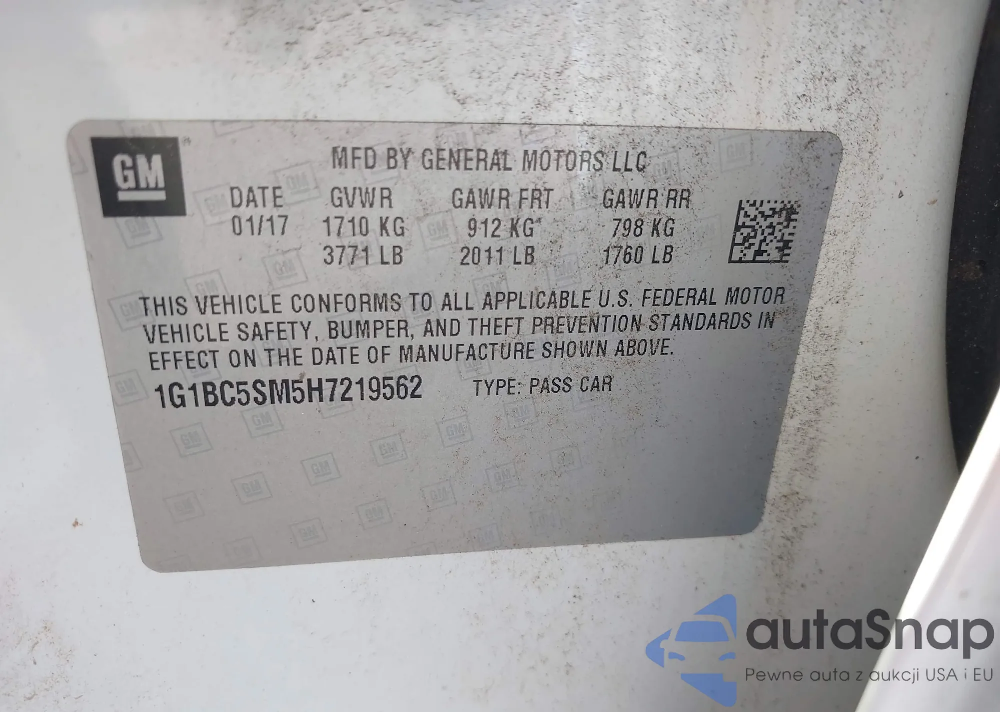 • VIN 1G1BE5SMXH7174743
