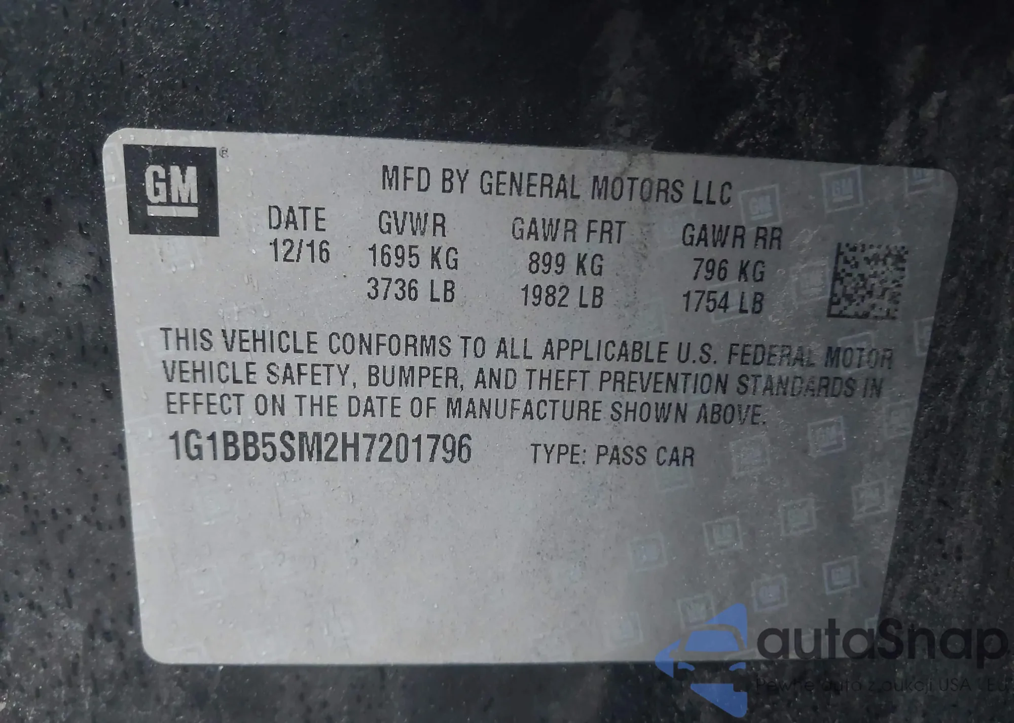 • VIN 1G1BB5SM2H7201796