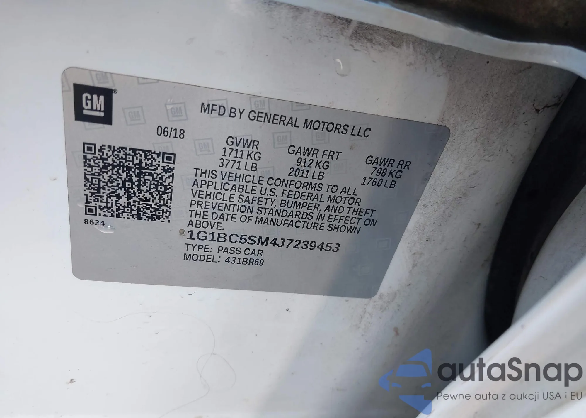 LOT: 91267395 VIN: 3G1BE6SM7JS612440