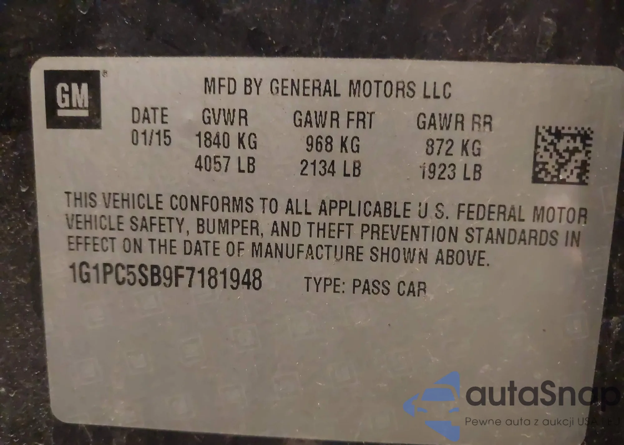 • VIN 1G1PC5SB9F7181948