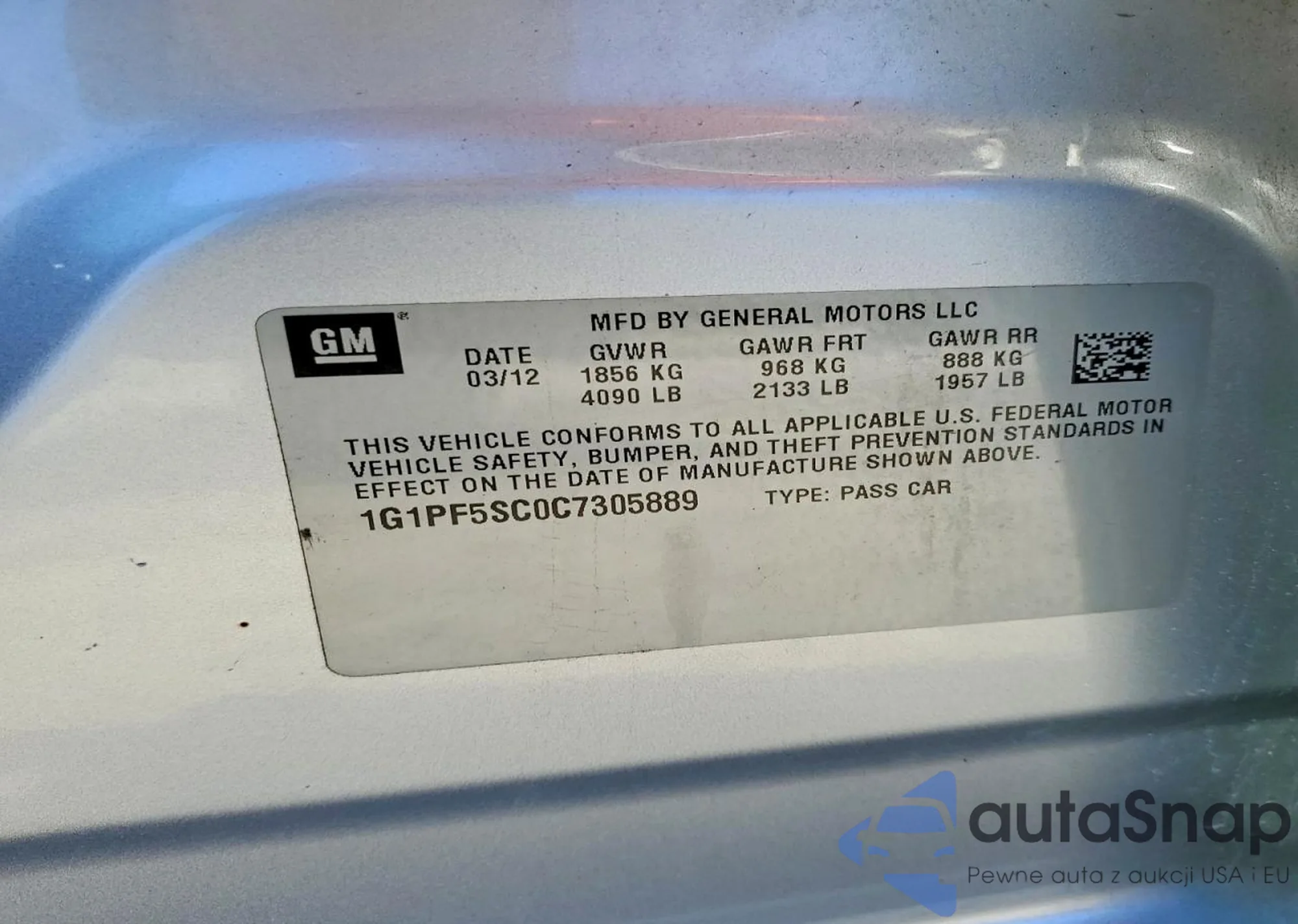 LOT: 73459675 VIN: 1G1PF5SC0C7305889