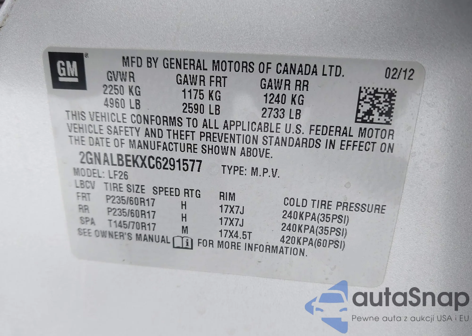• VIN 2GNALBEKXC6291577