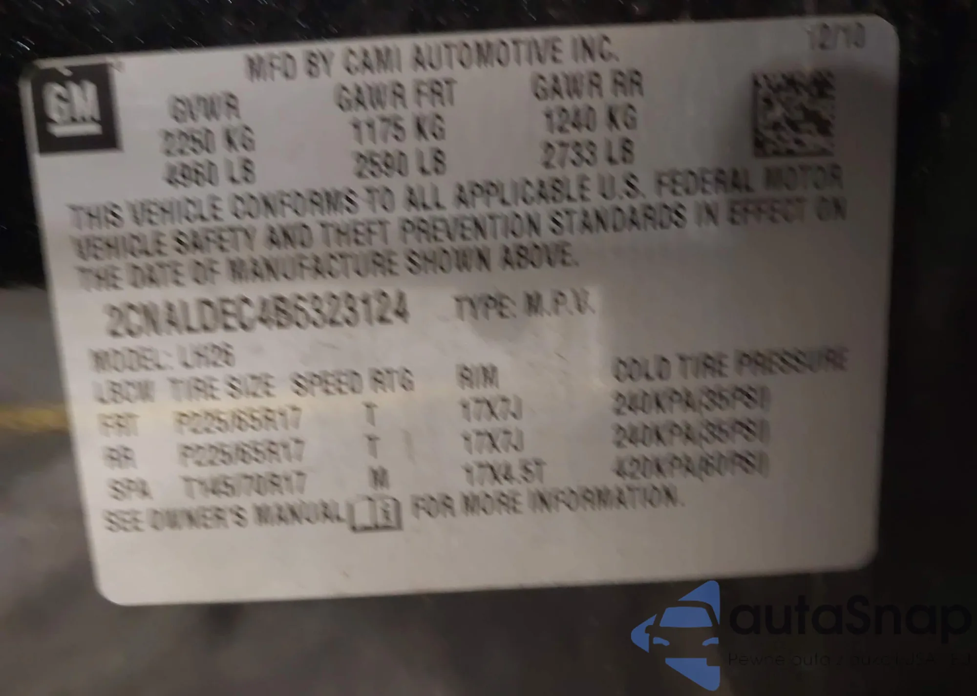 • VIN 2CNALDEC4B6323124