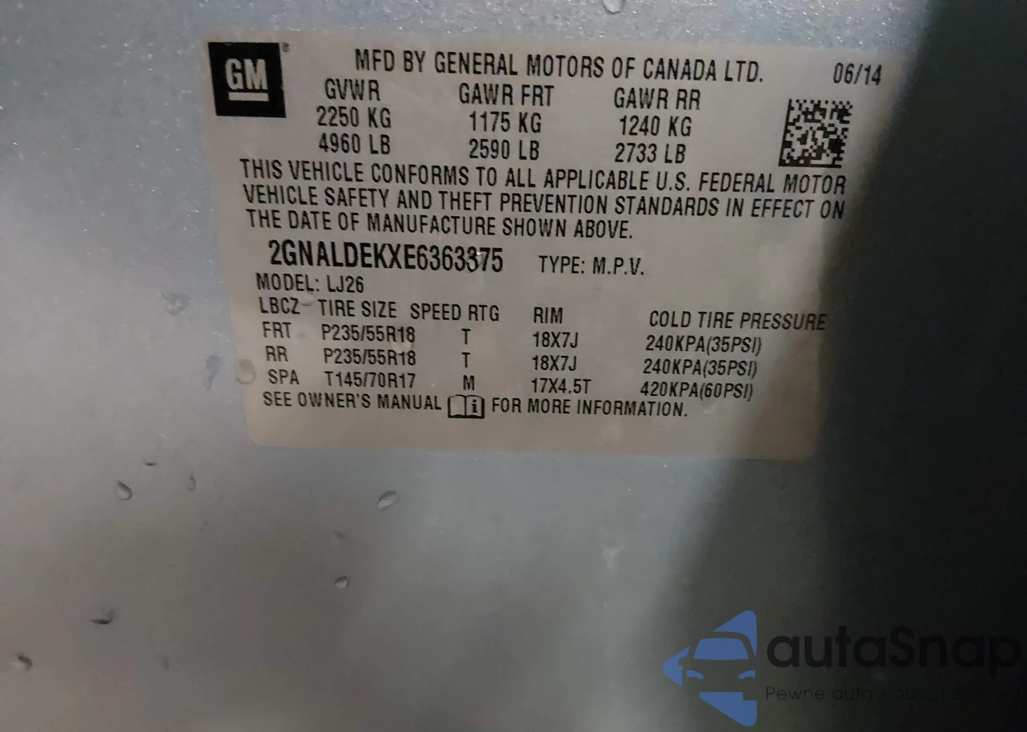 • VIN 2GNALDEKXE6363375