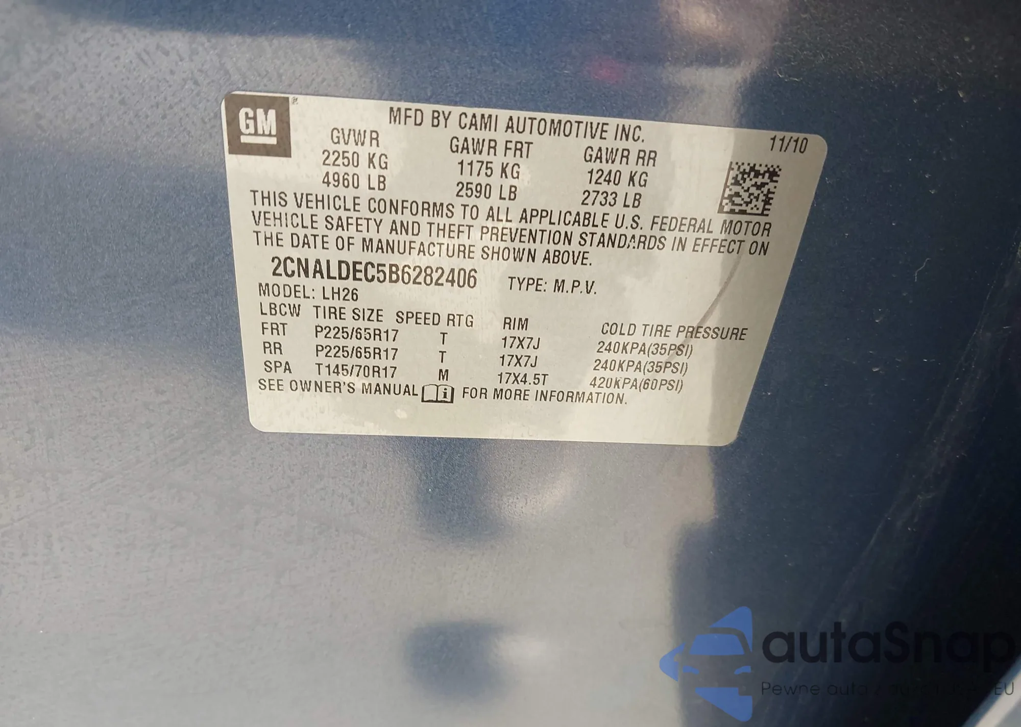 • VIN 2CNALDEC5B6282406