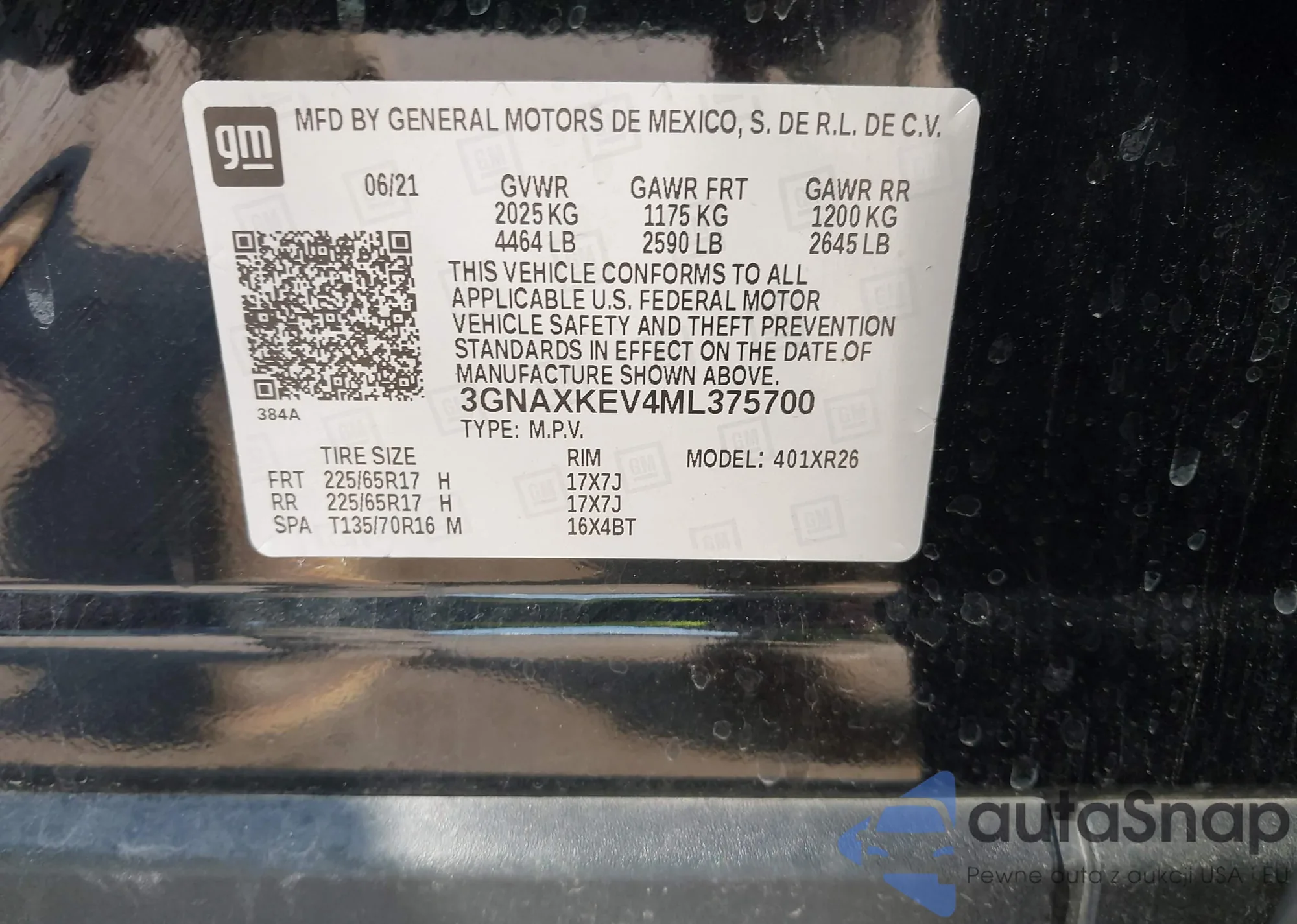 LOT: 44011061 VIN: 3GNAXKEV4ML375700