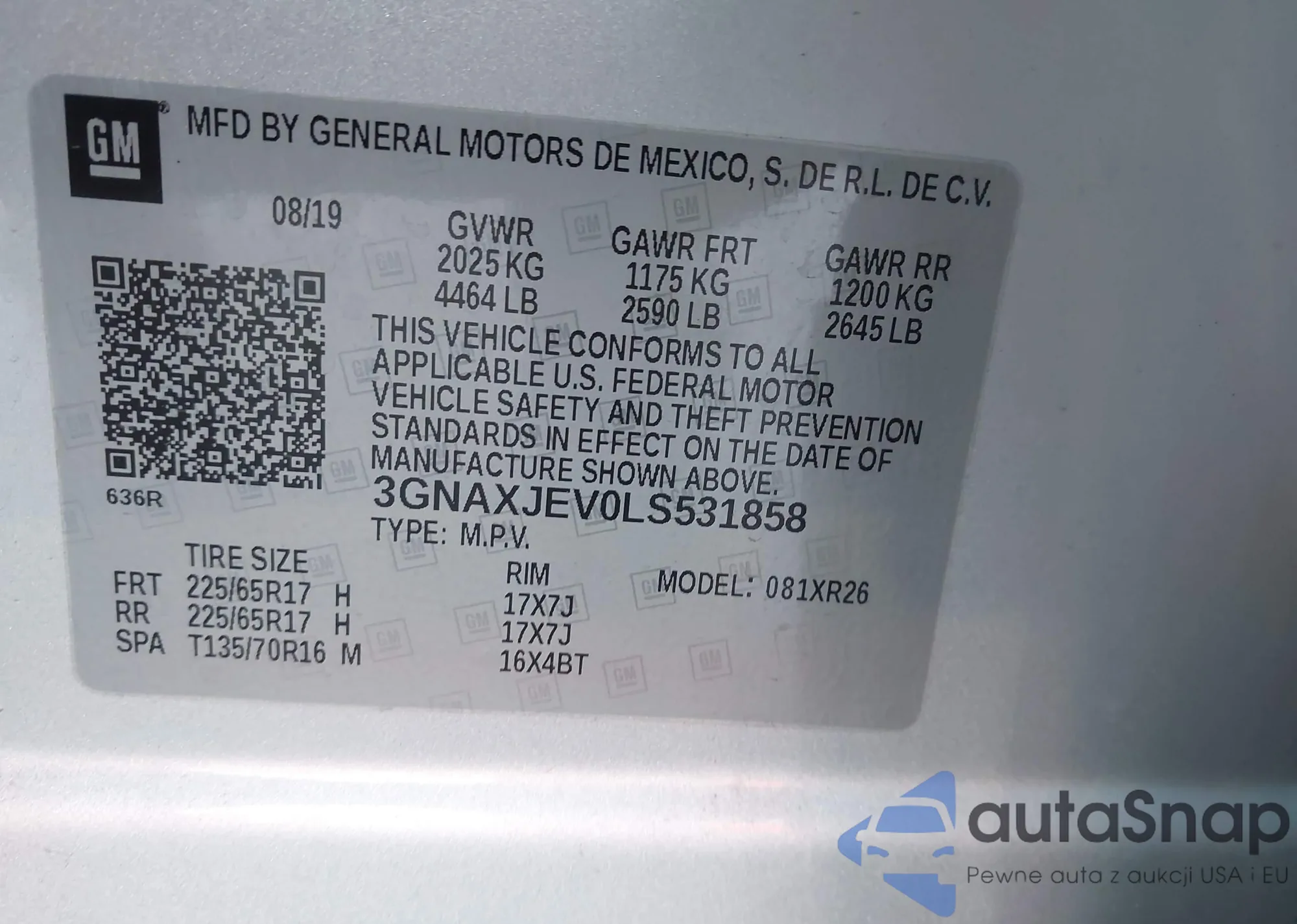 • VIN 3GNAXJEV0LS531858