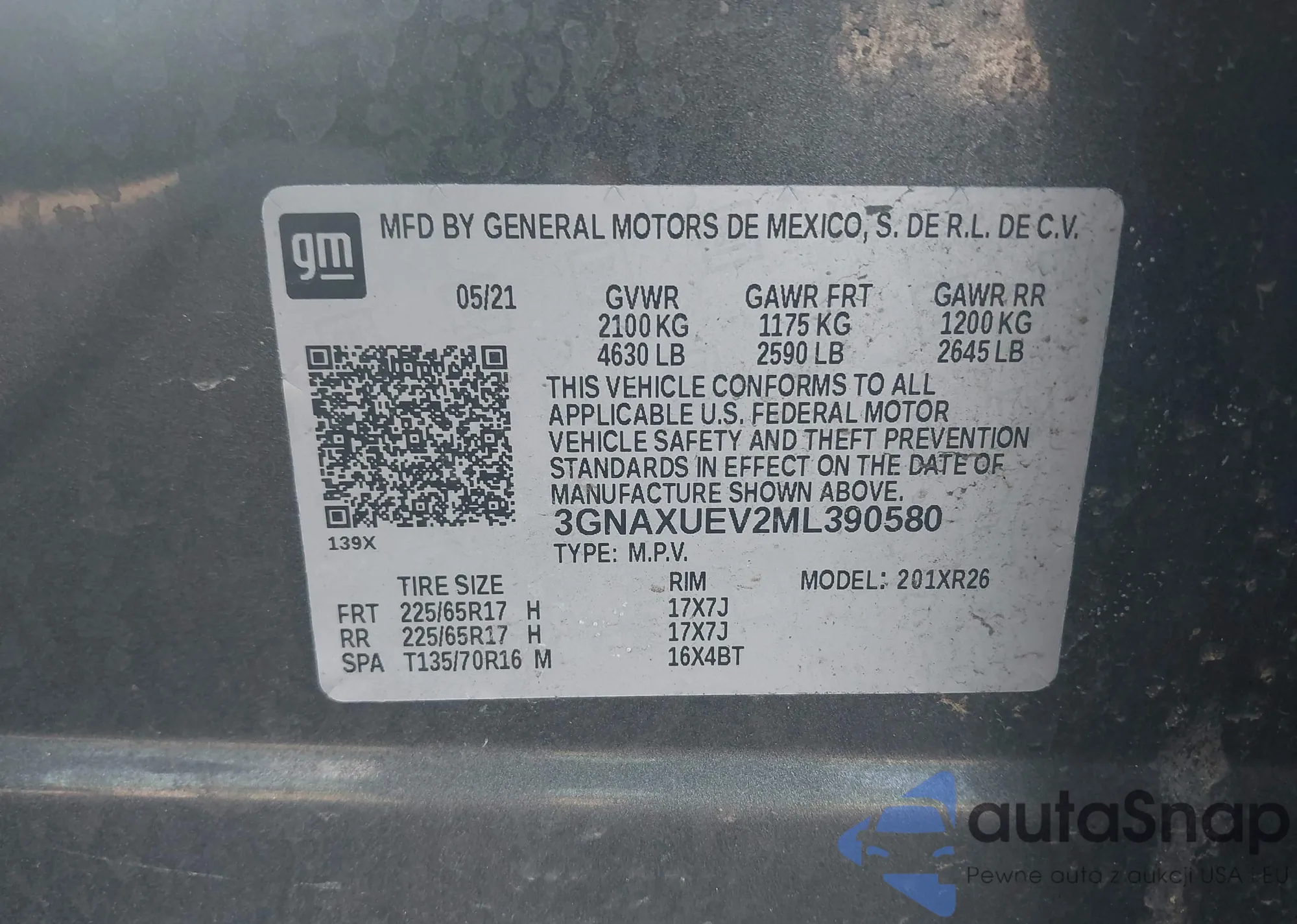 LOT: 44420942 VIN: 3GNAXUEV2ML390580