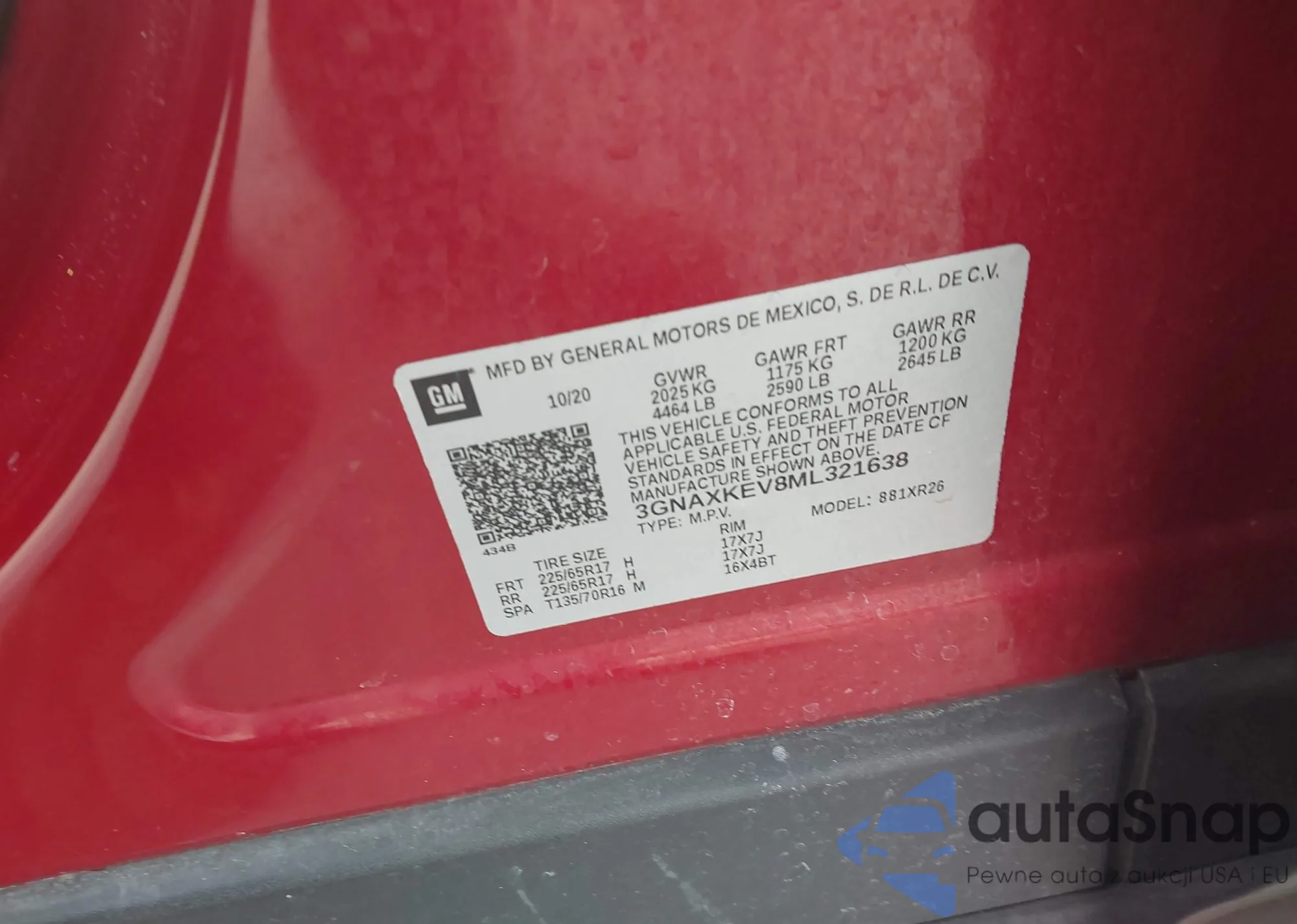 • VIN 3GNAXKEV8ML321638