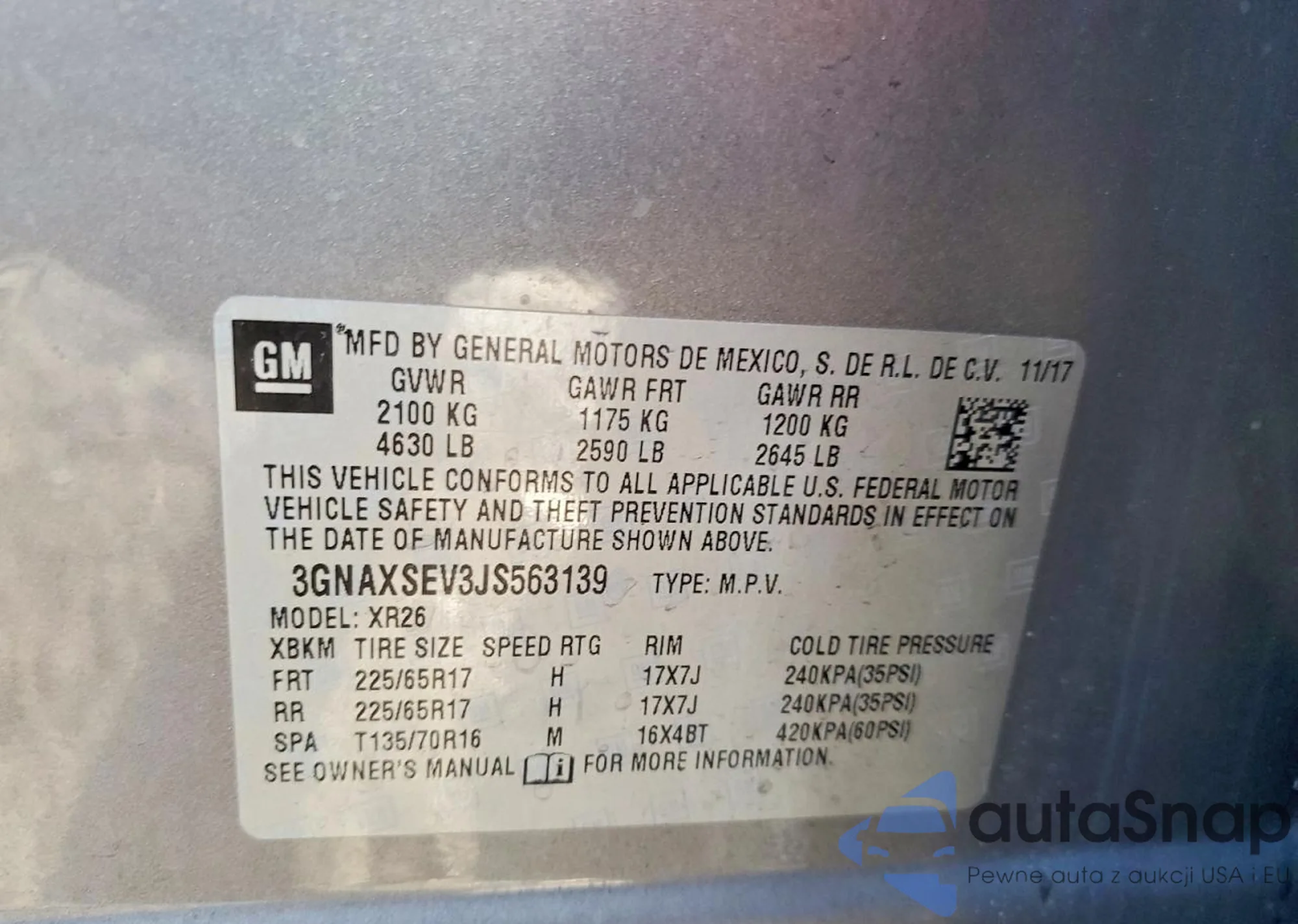 • VIN 3GNAXSEV3JS563139