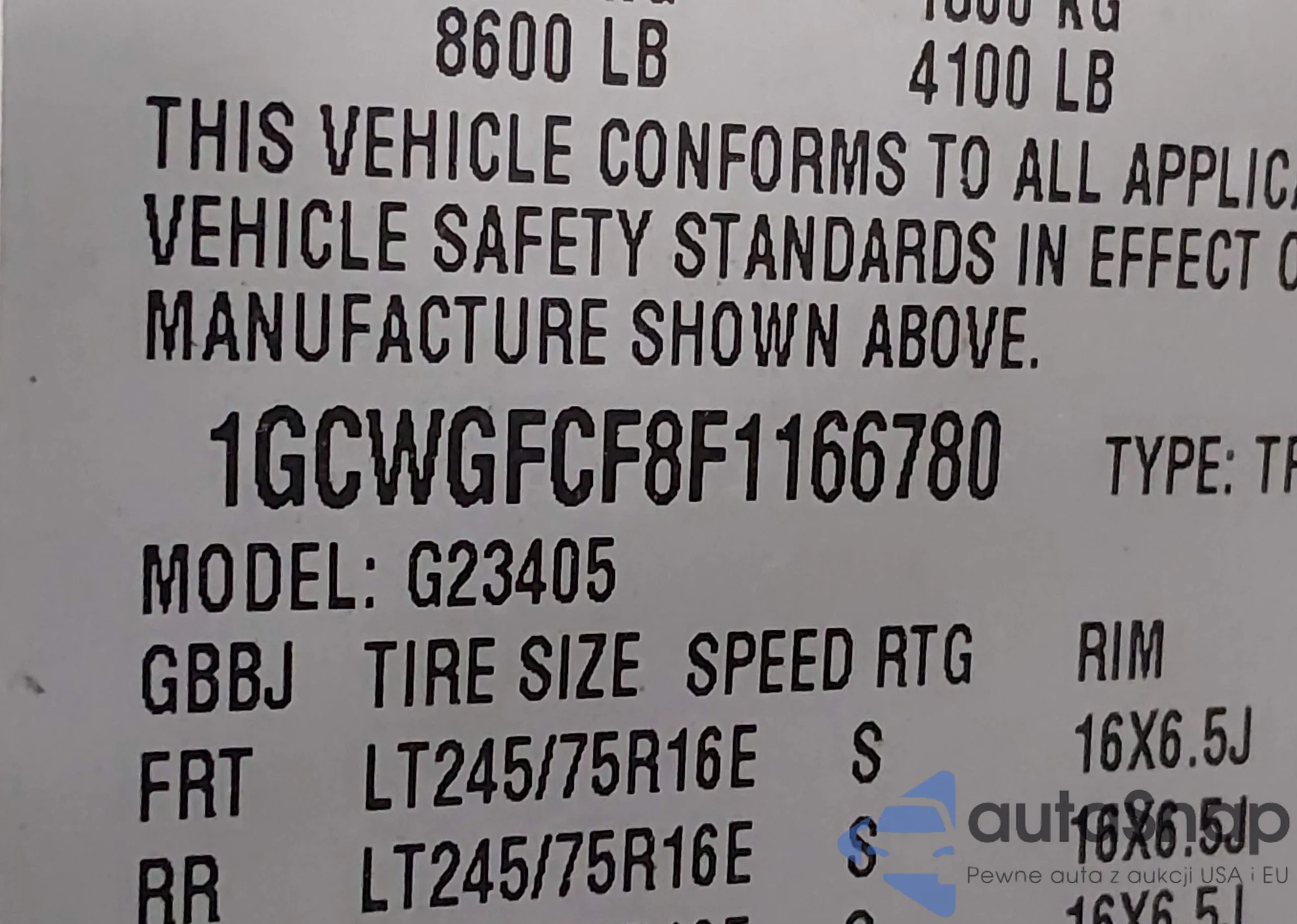• VIN 1GCWGFCF8F1166780