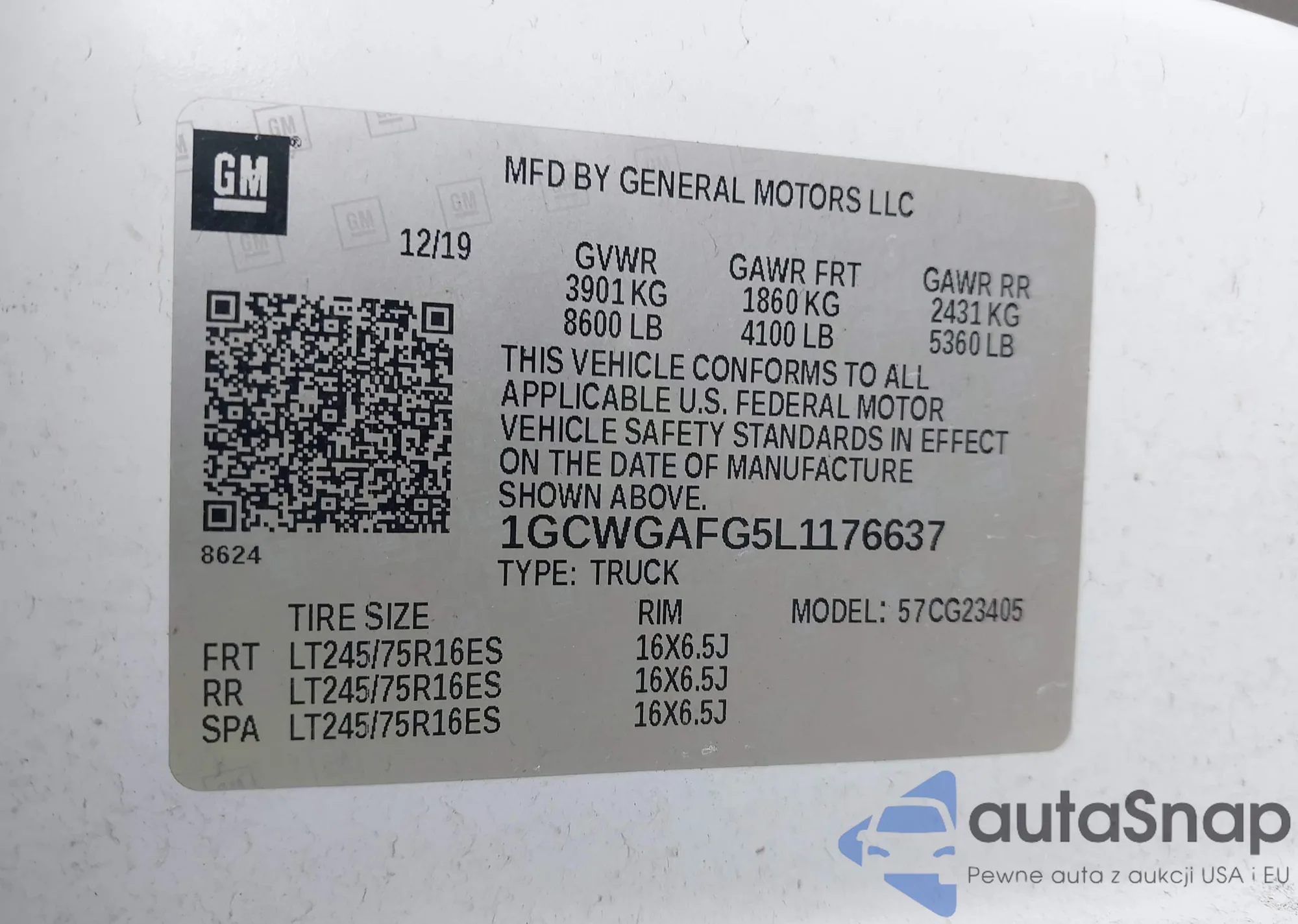 LOT: 43607348 VIN: 1GCWGAFG5L1176637