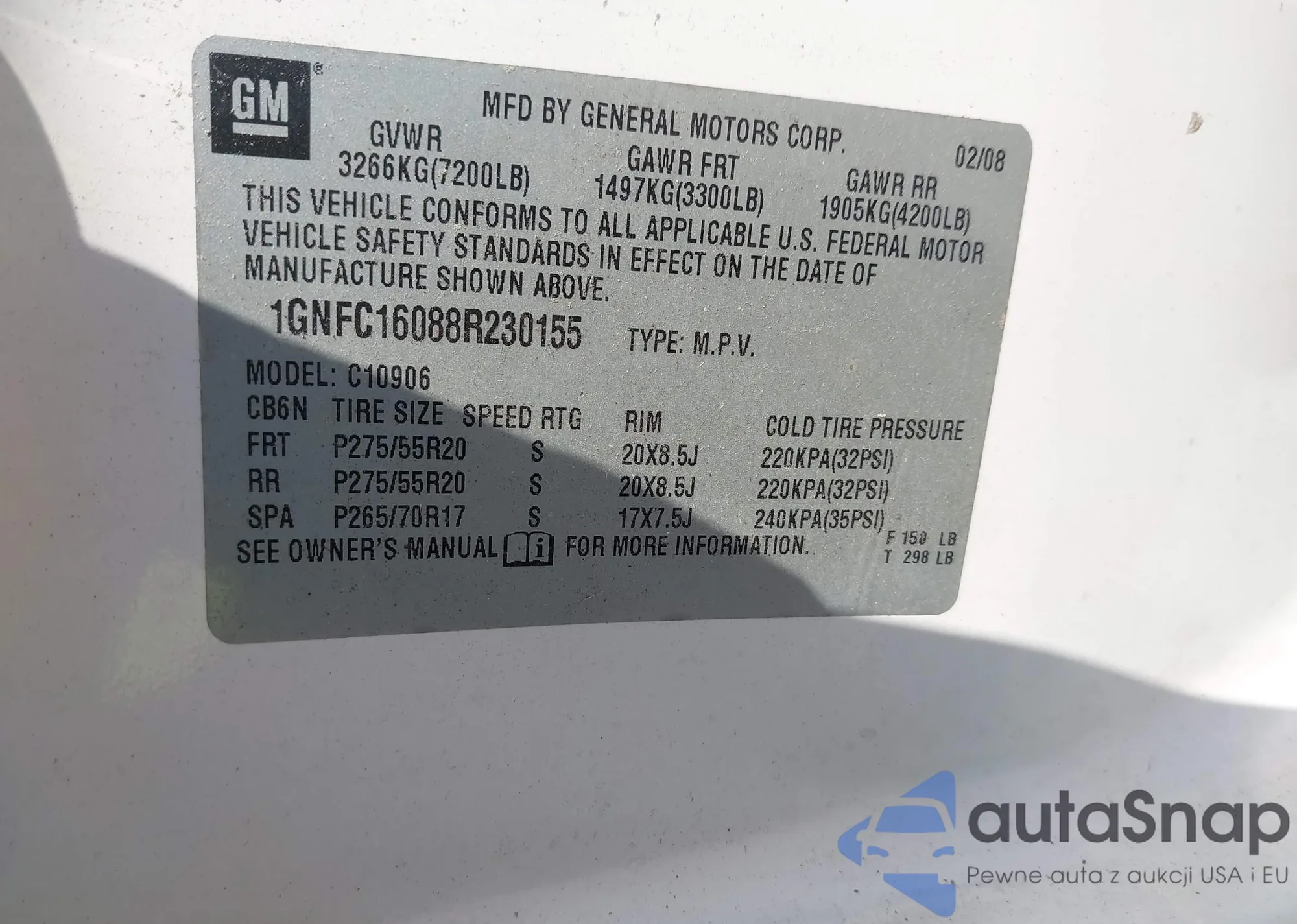 LOT: 43634387 VIN: 1GNFC16088R230155