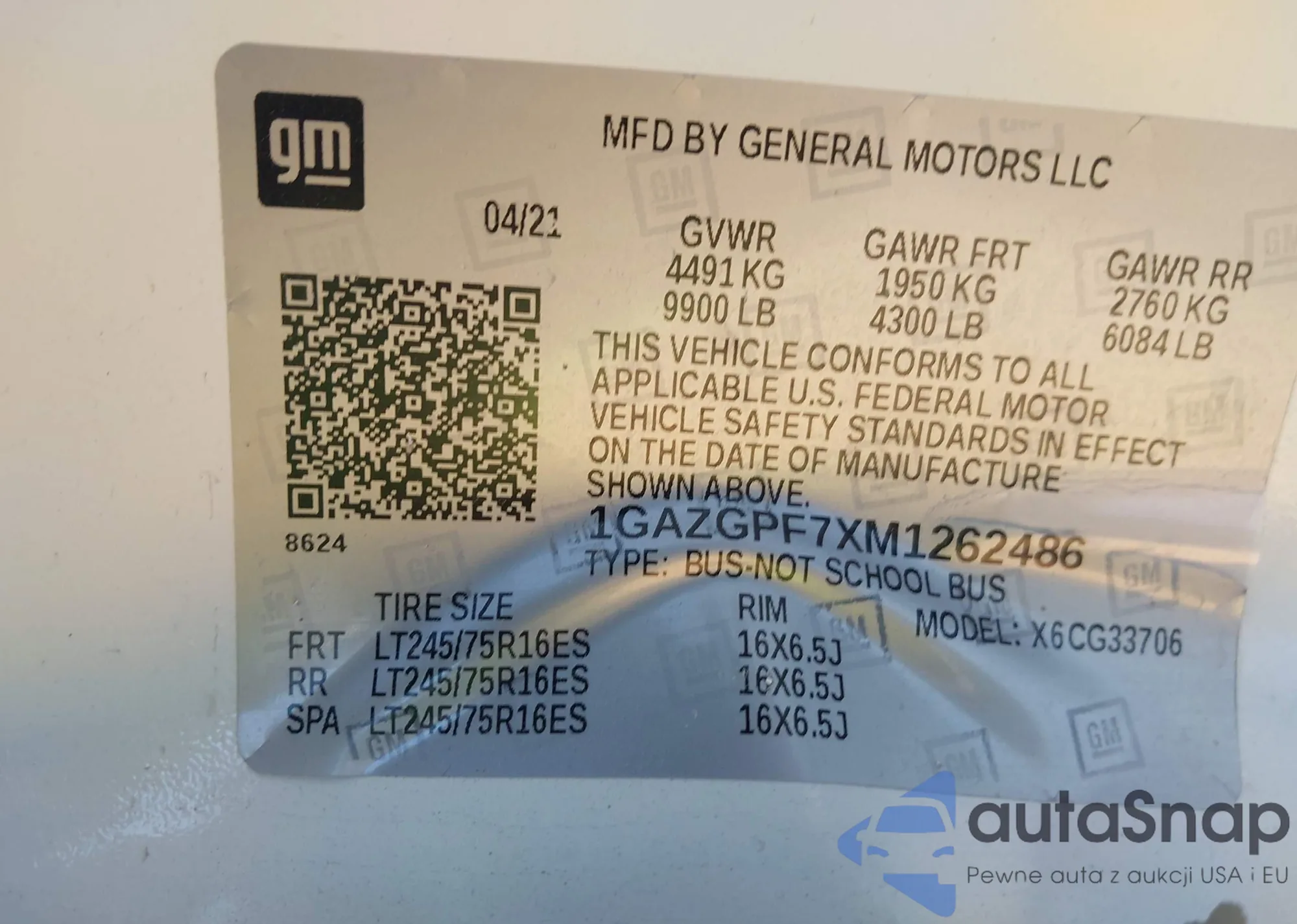 • VIN 1GAZGPF7XM1262486