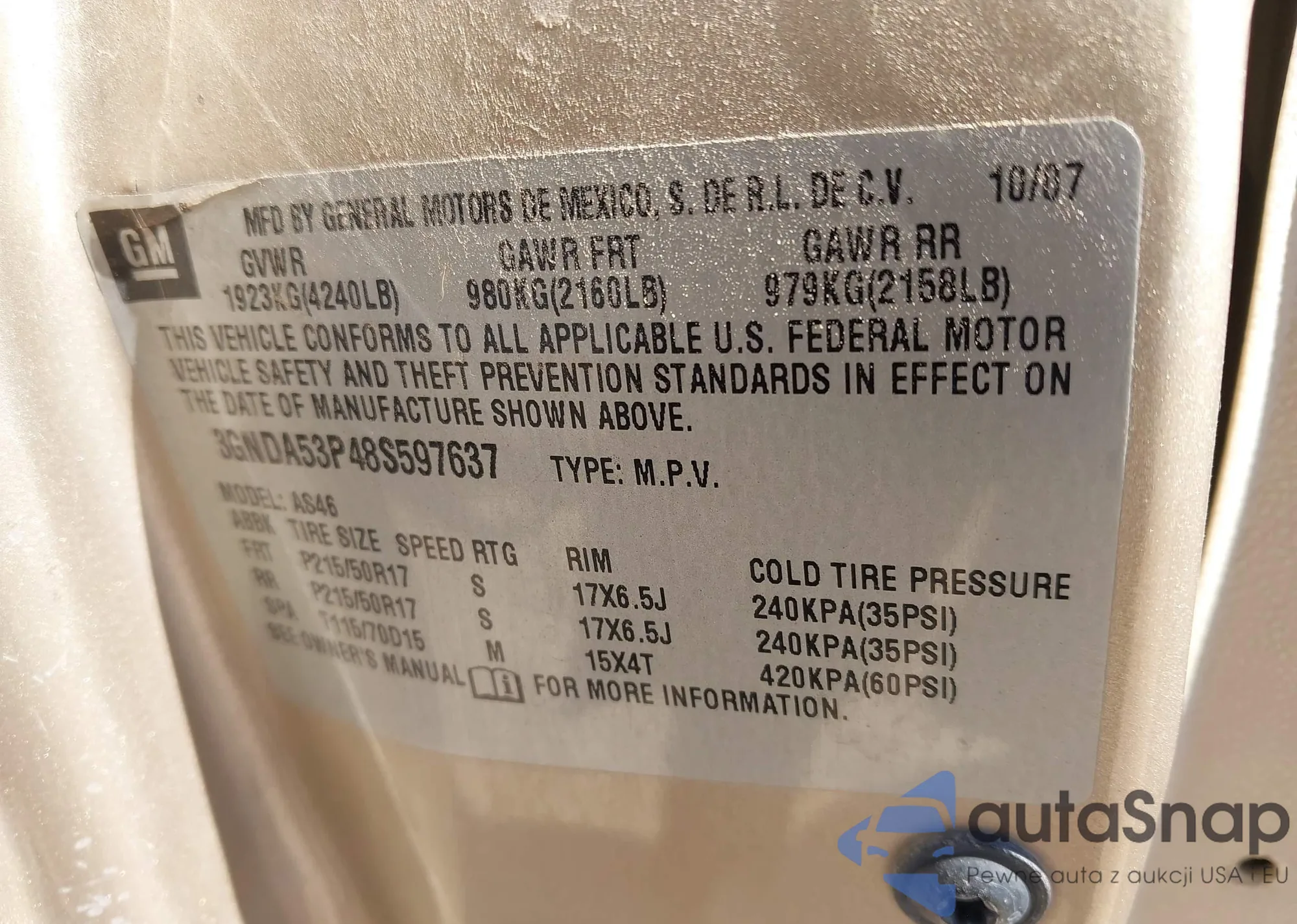 • VIN 3GNDA53P48S597637