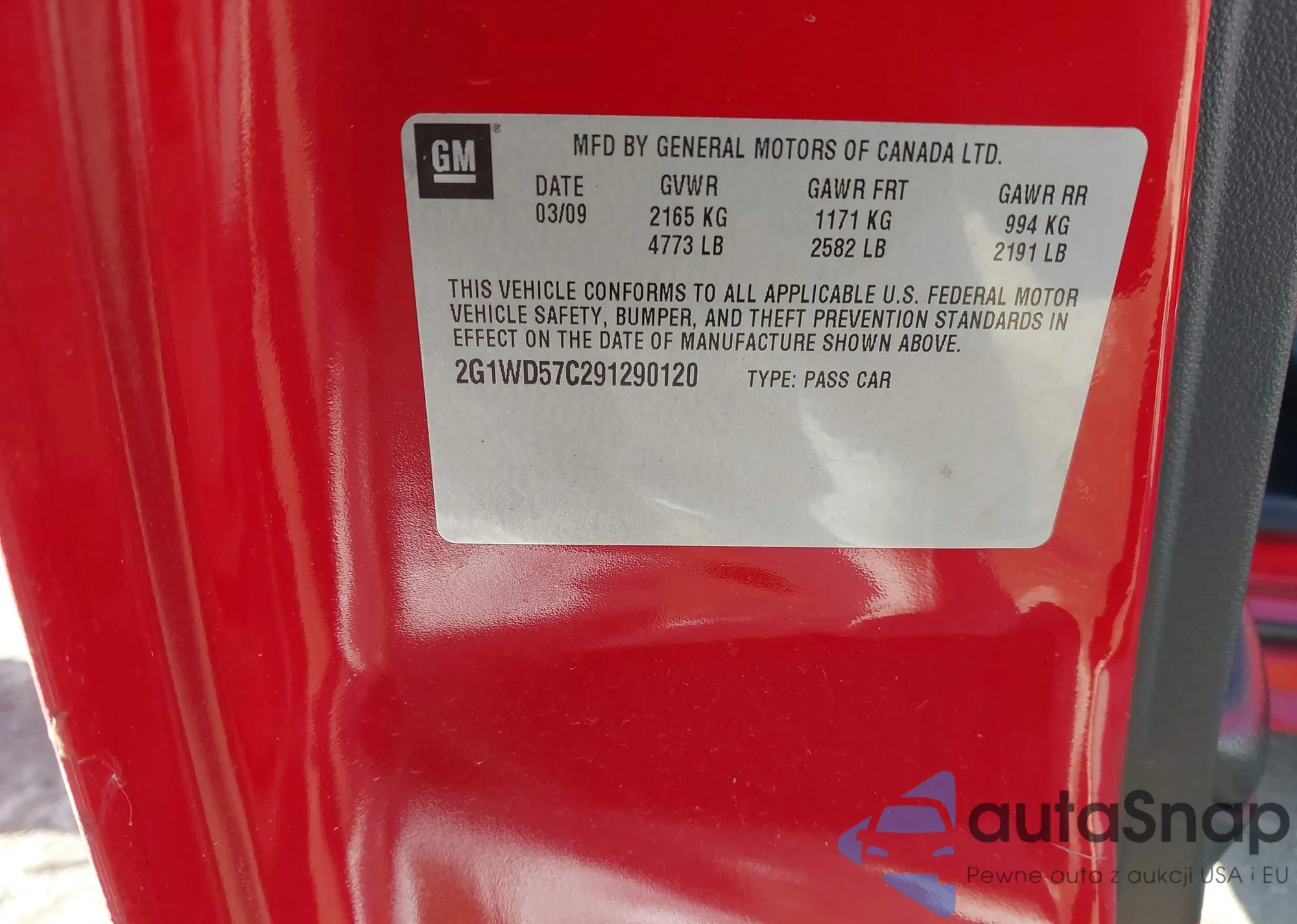 • VIN 2G1WD57C291290120