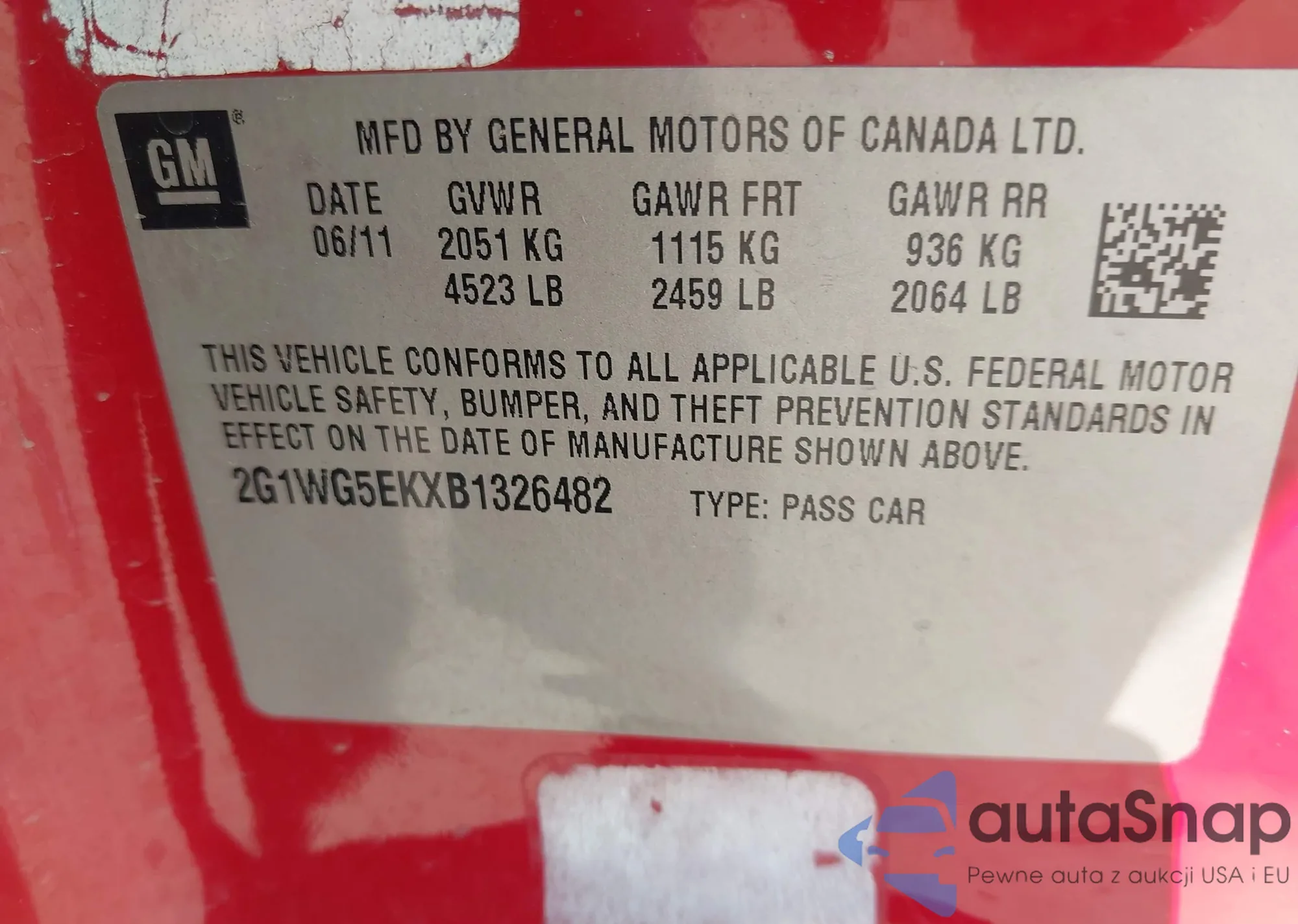 • VIN 2G1WG5EKXB1326482
