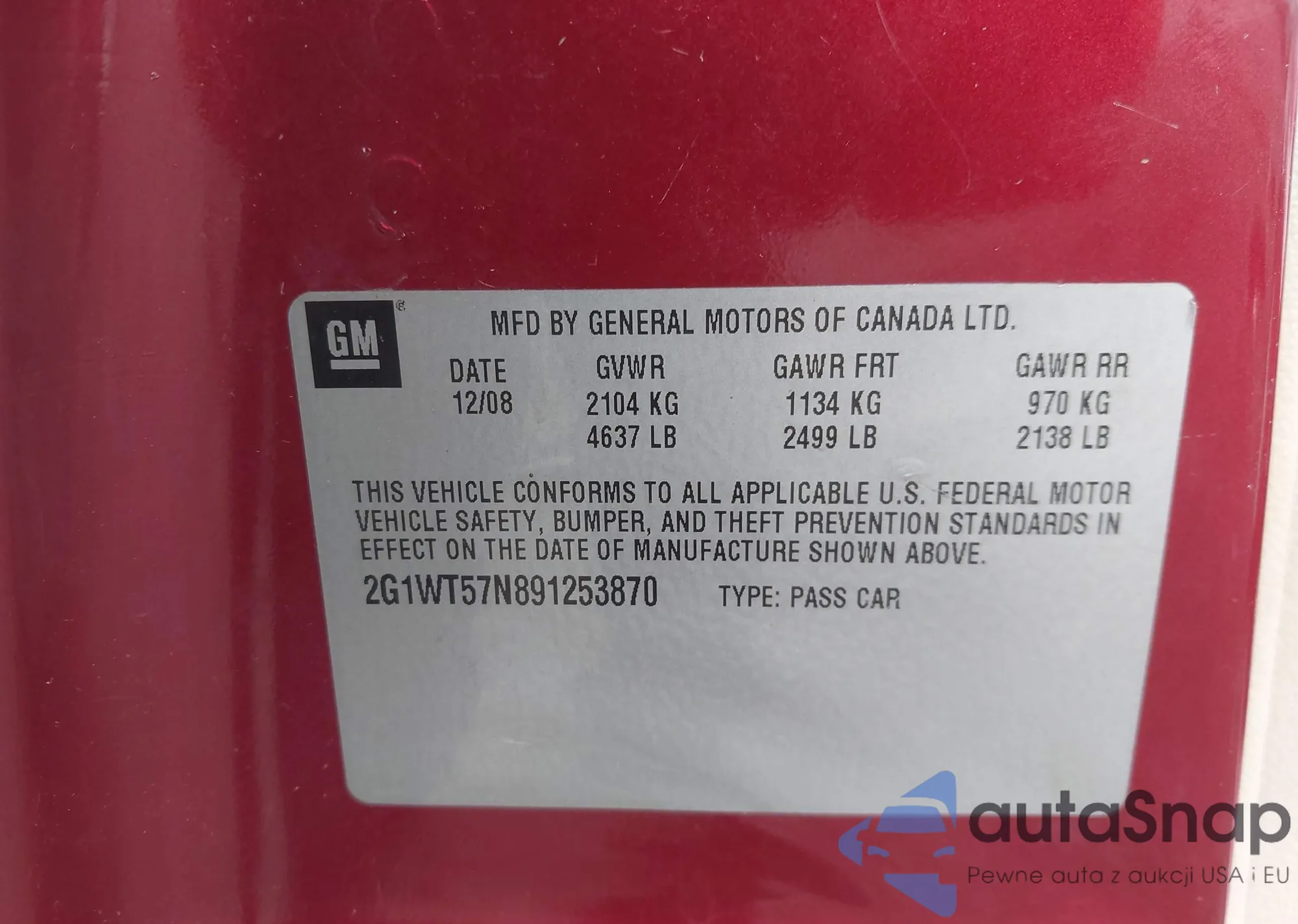 • VIN 2G1WT57N891253870