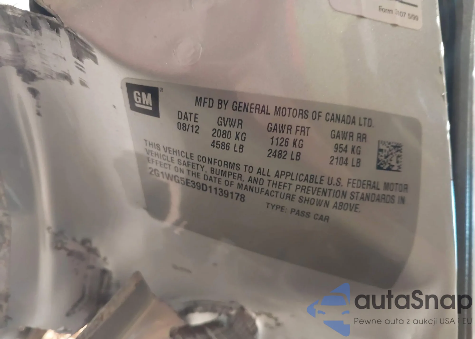 • VIN 2G1WG5E39D1139178