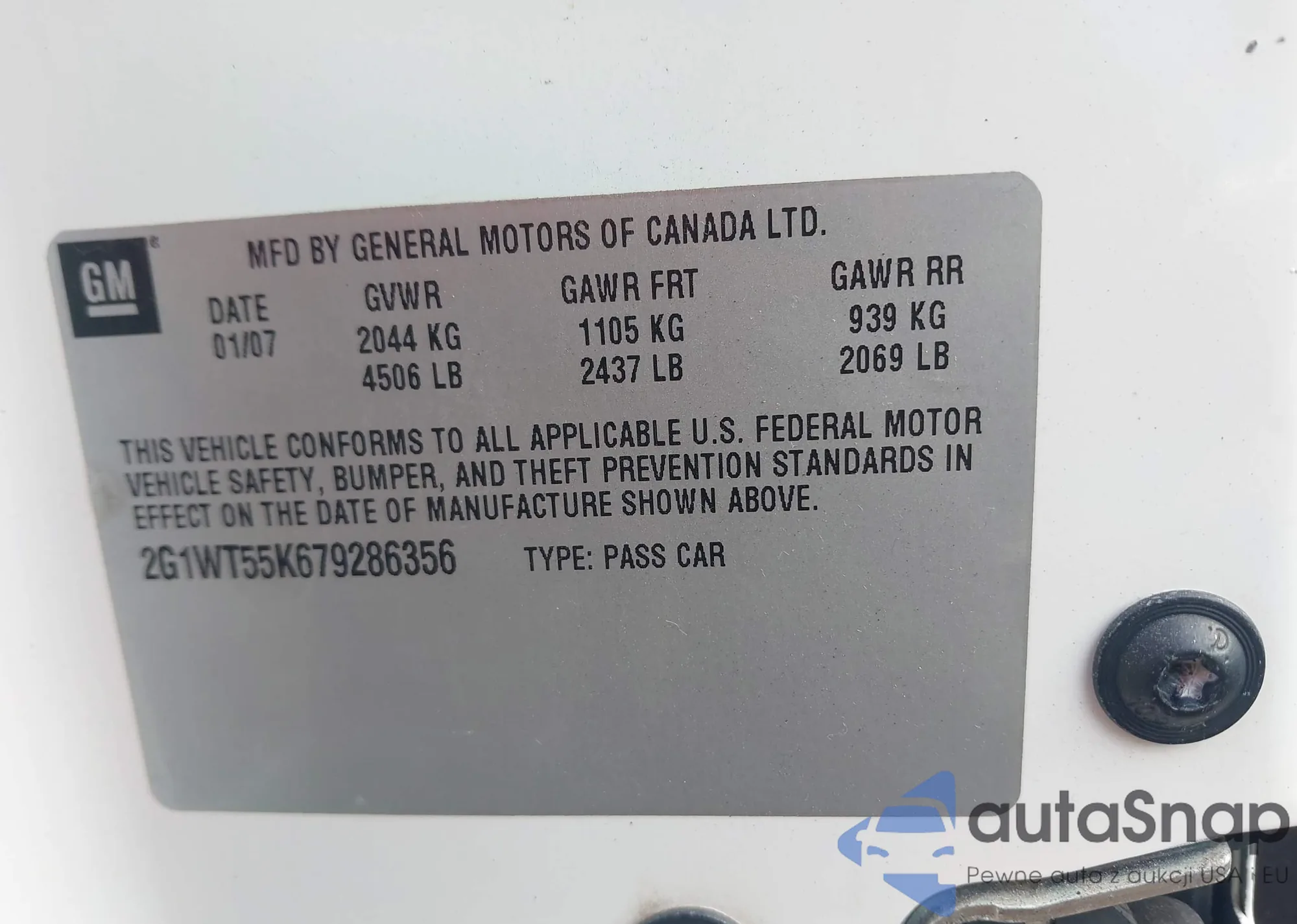 LOT: 44296606 VIN: 2G1WT55K679286356