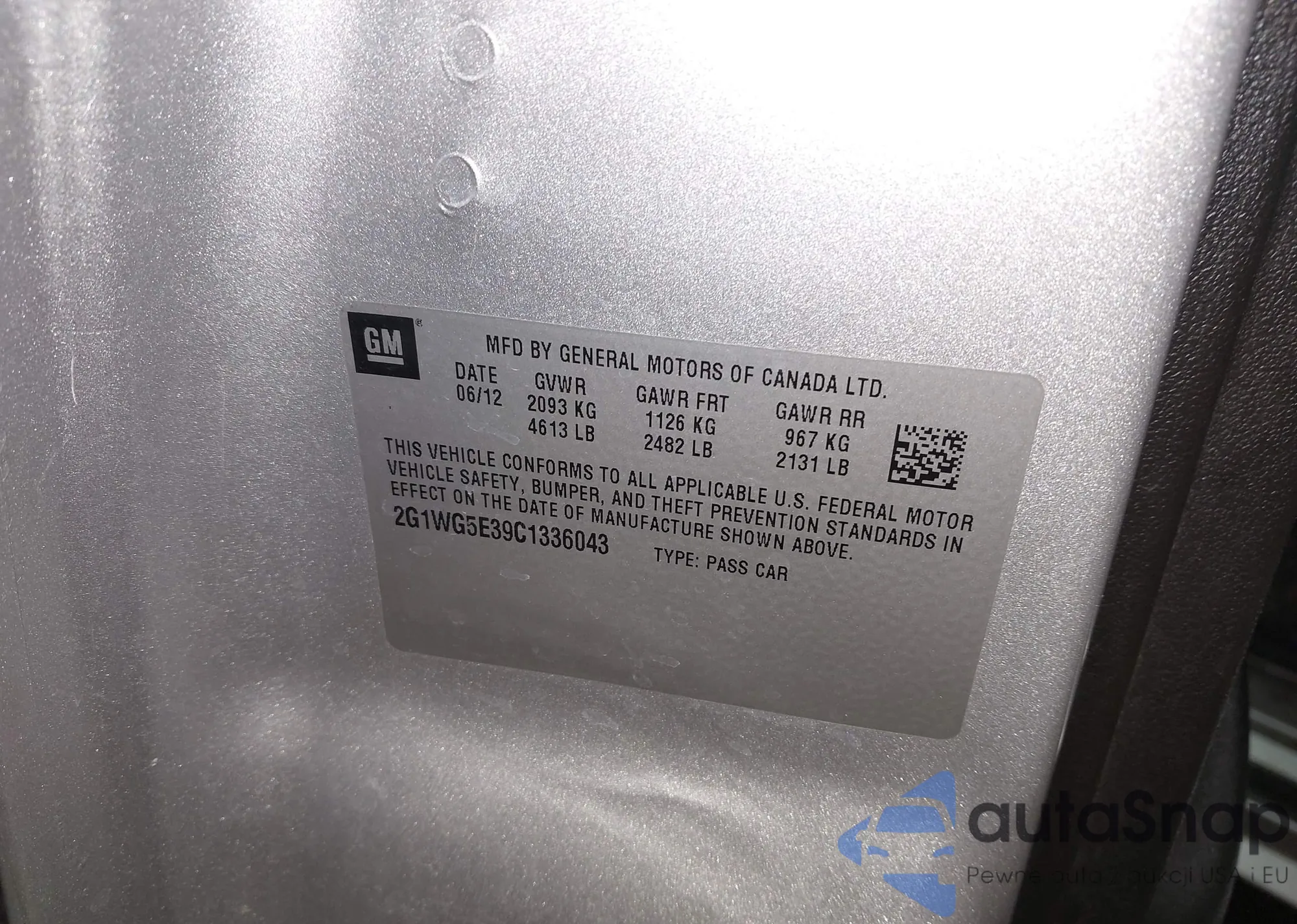 • VIN 2G1WG5E39C1336043