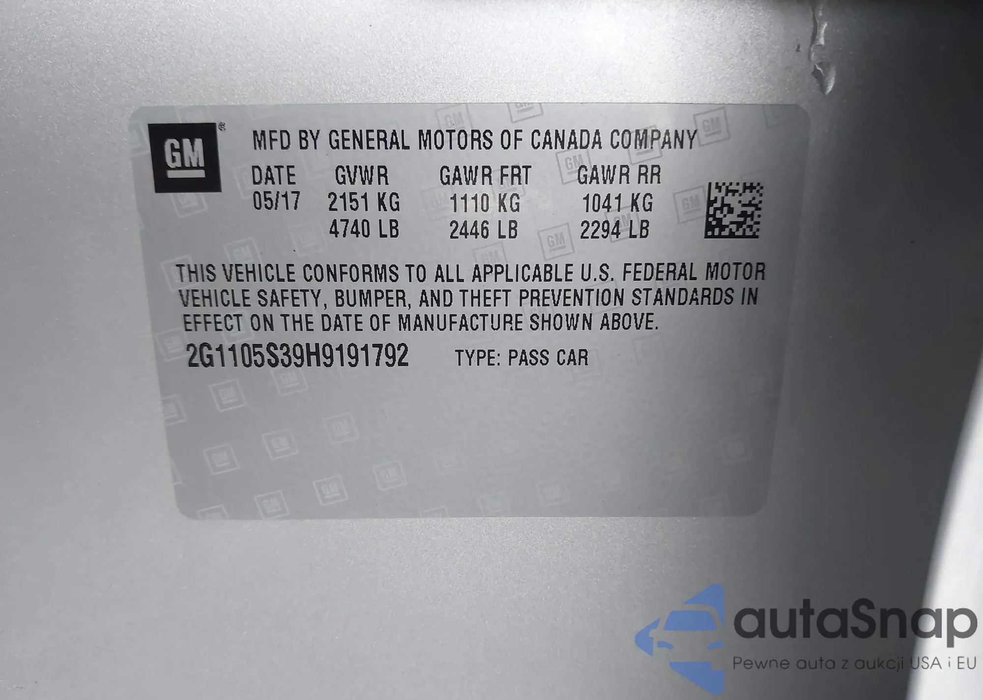 • VIN 2G1105S39H9191792