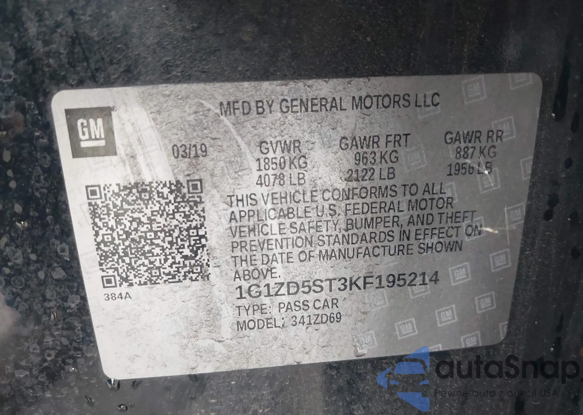 • VIN 1G1ZD5ST3KF195214