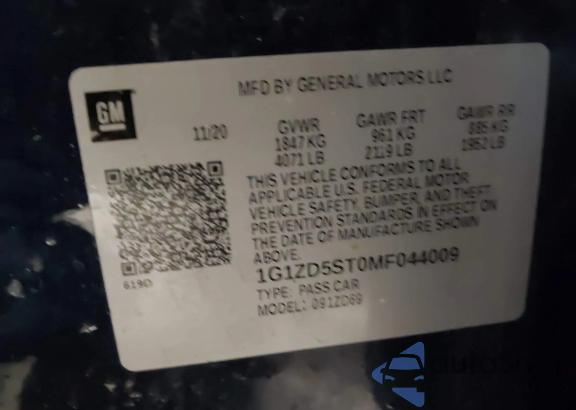 • VIN 1G1ZD5ST0MF044009
