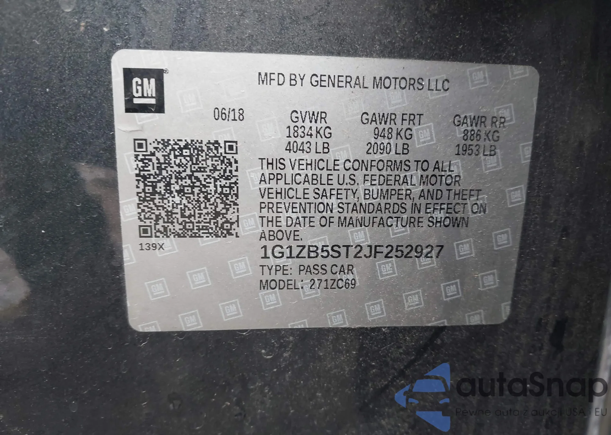 • VIN 1G1ZB5ST2JF252927