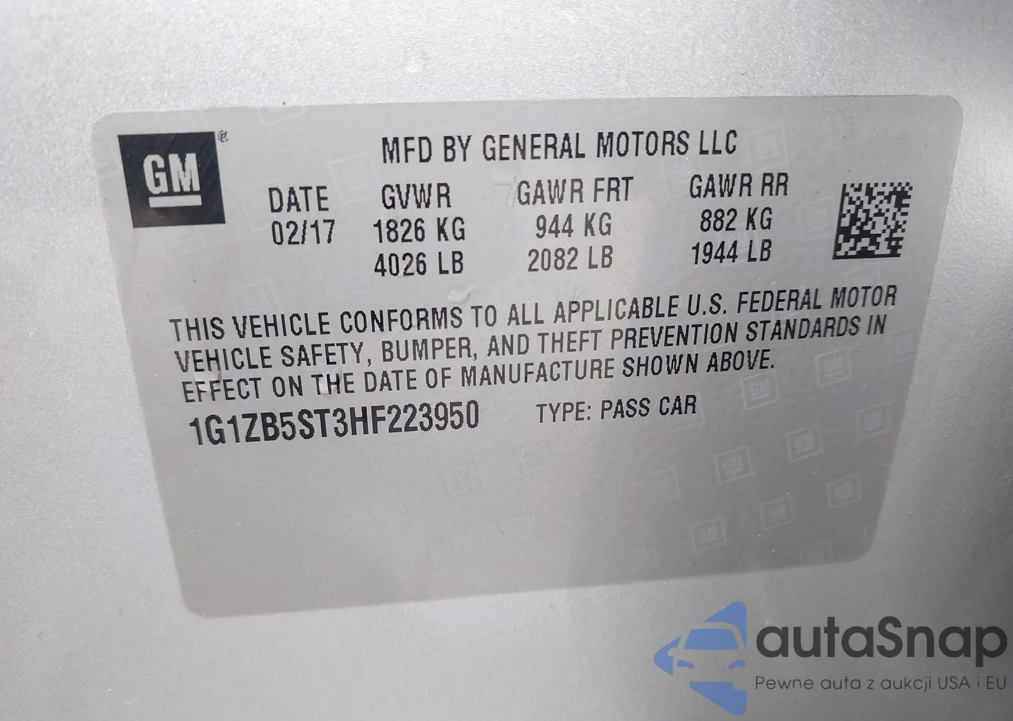 • VIN 1G1ZB5ST3HF223950