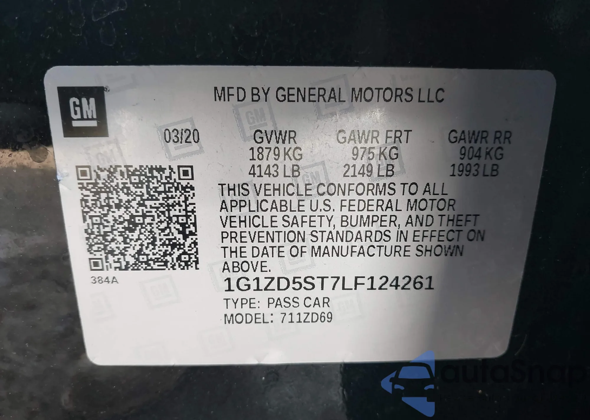 LOT: 43953368 VIN: 1G1ZD5ST7LF124261
