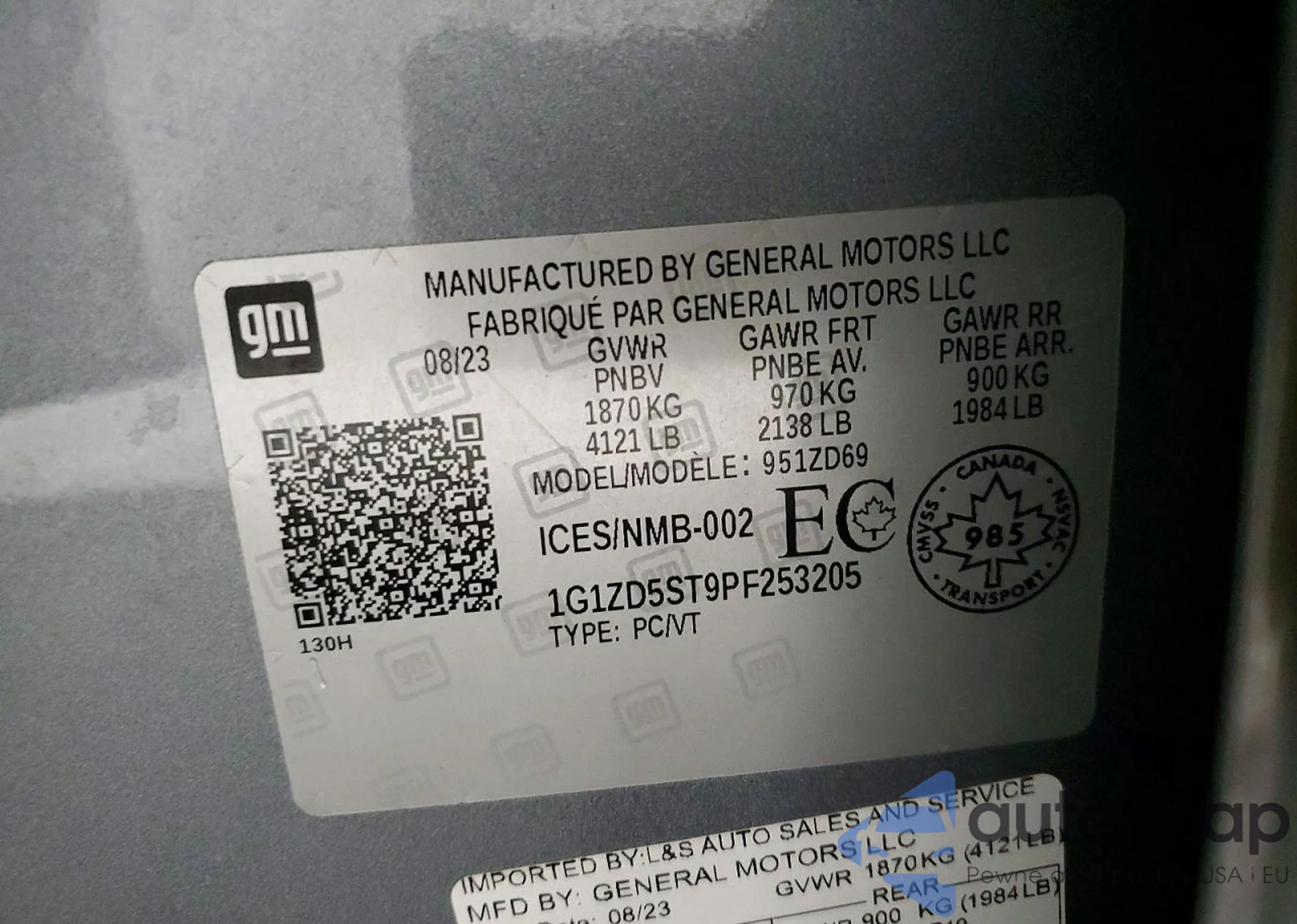 • VIN 1G1ZD5ST9PF253205
