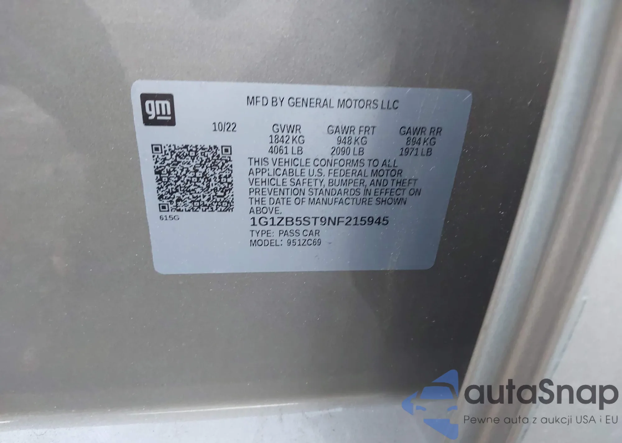 • VIN 1G1ZB5ST9NF215945