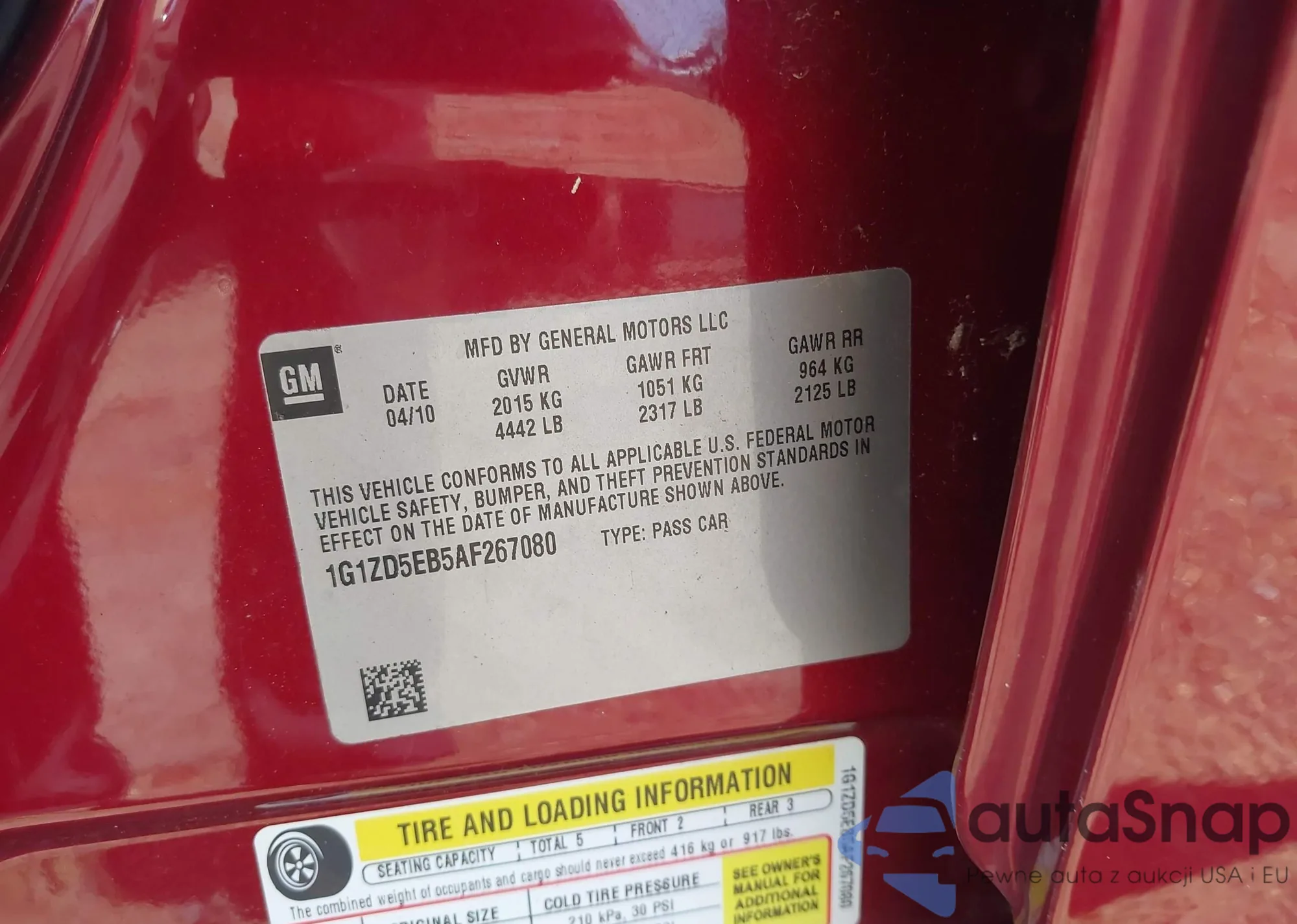 • VIN 1G1ZD5EB5AF267080