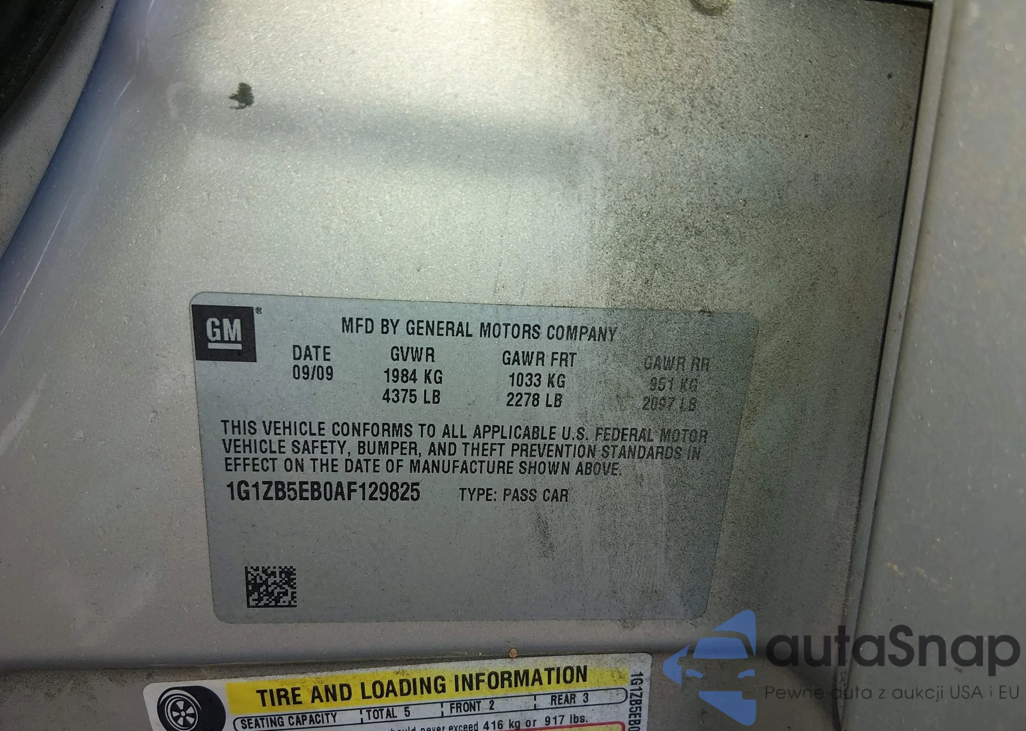 • VIN 1G1ZB5EB0AF129825