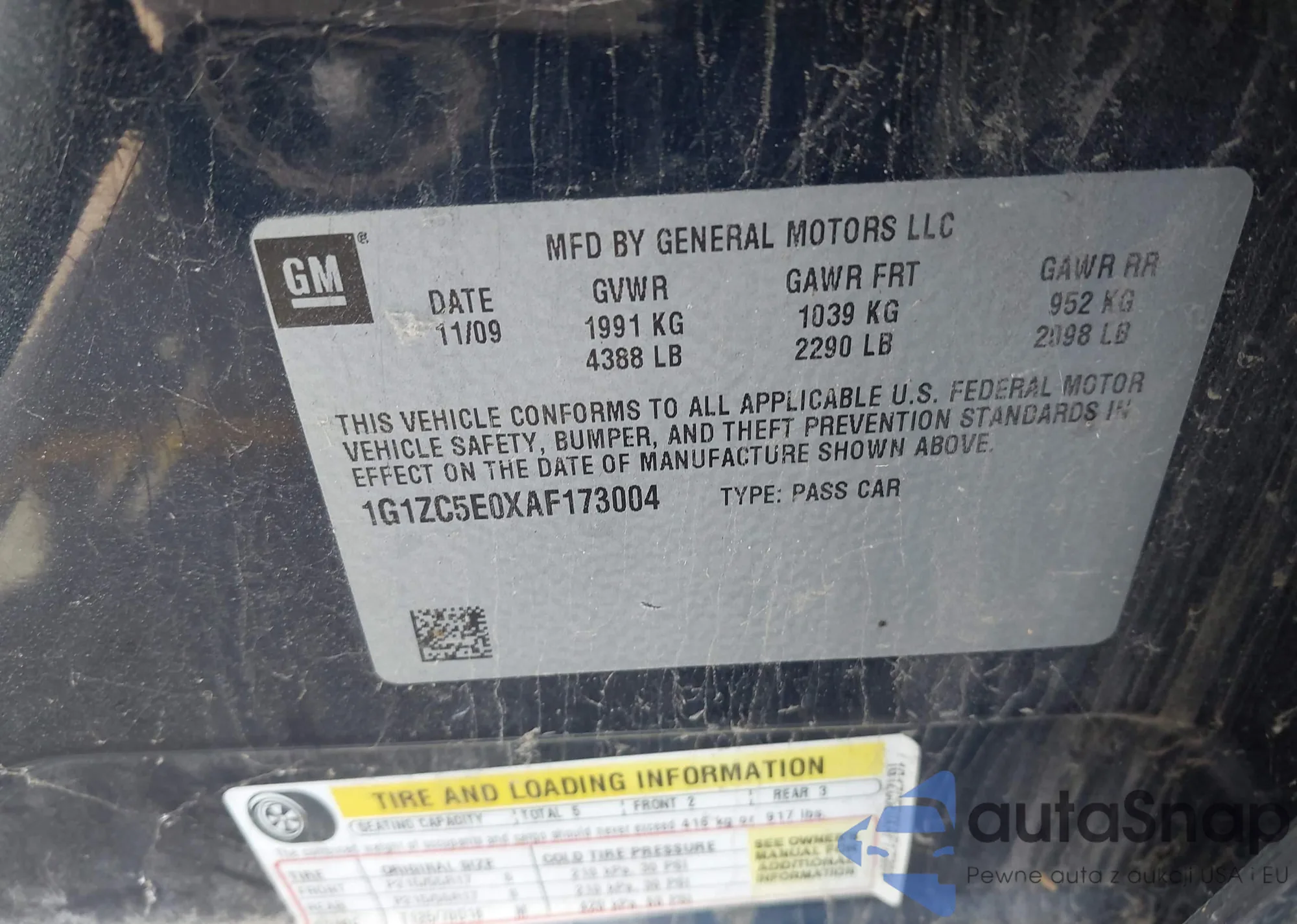• VIN 1G1ZC5E0XAF173004