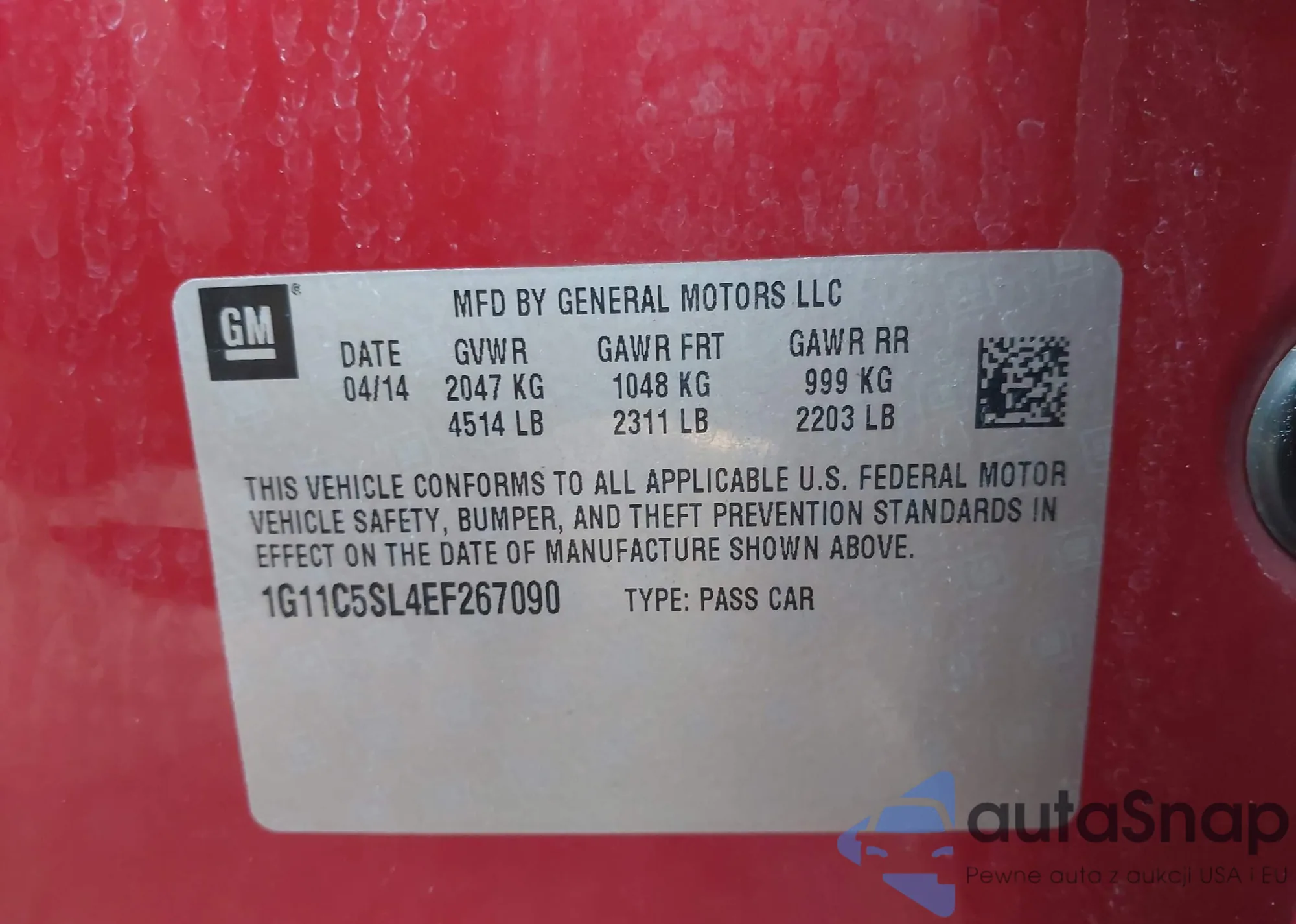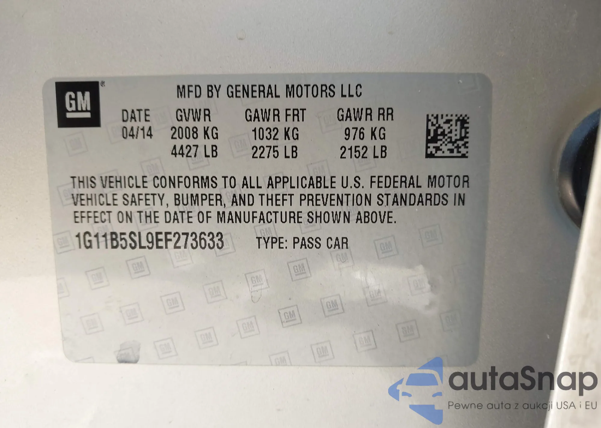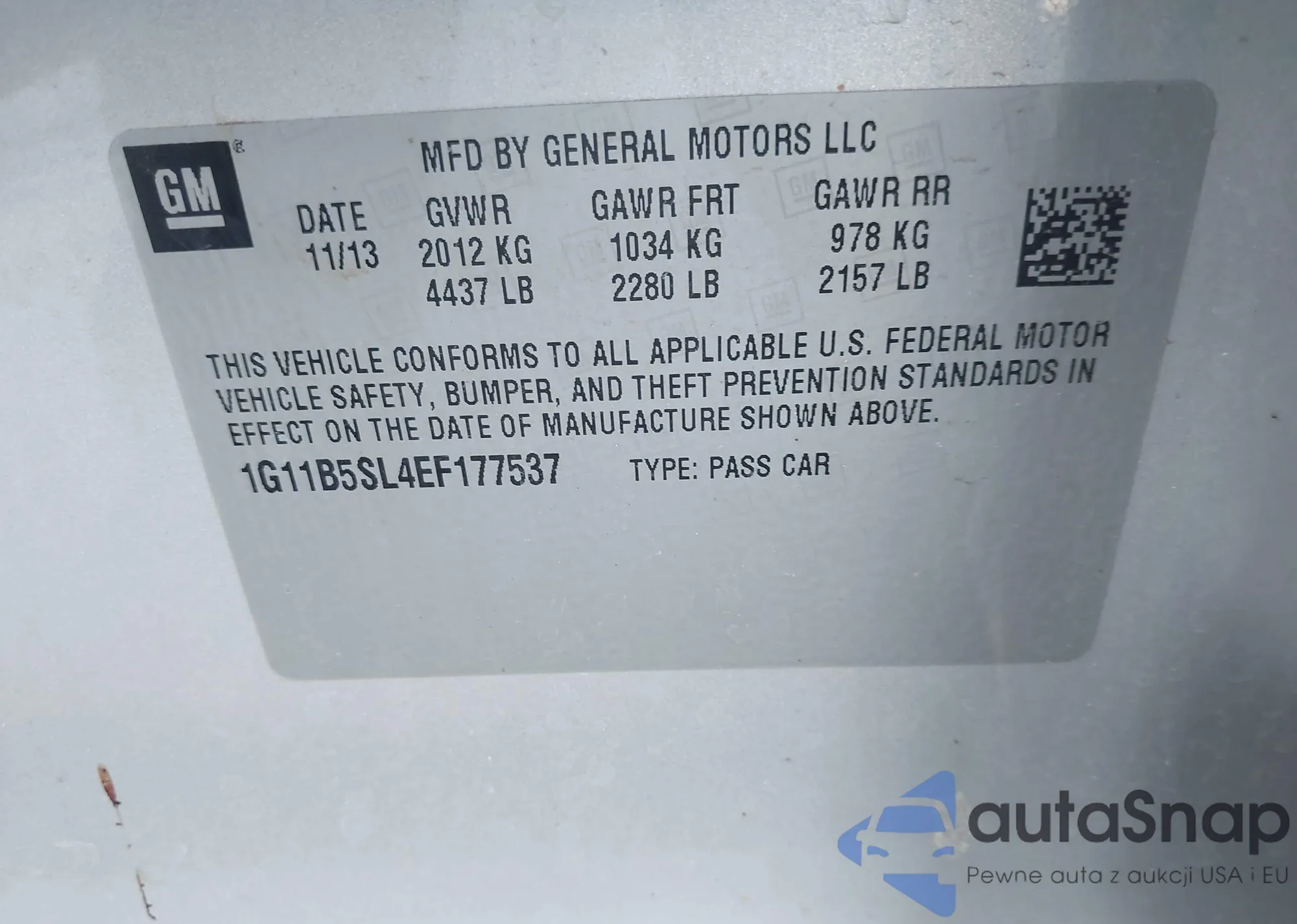 LOT: 43804618 VIN: 1G11B5SL4EF177537