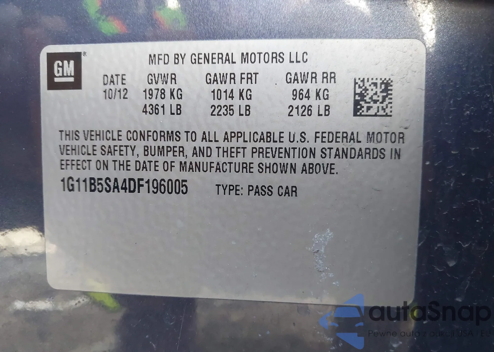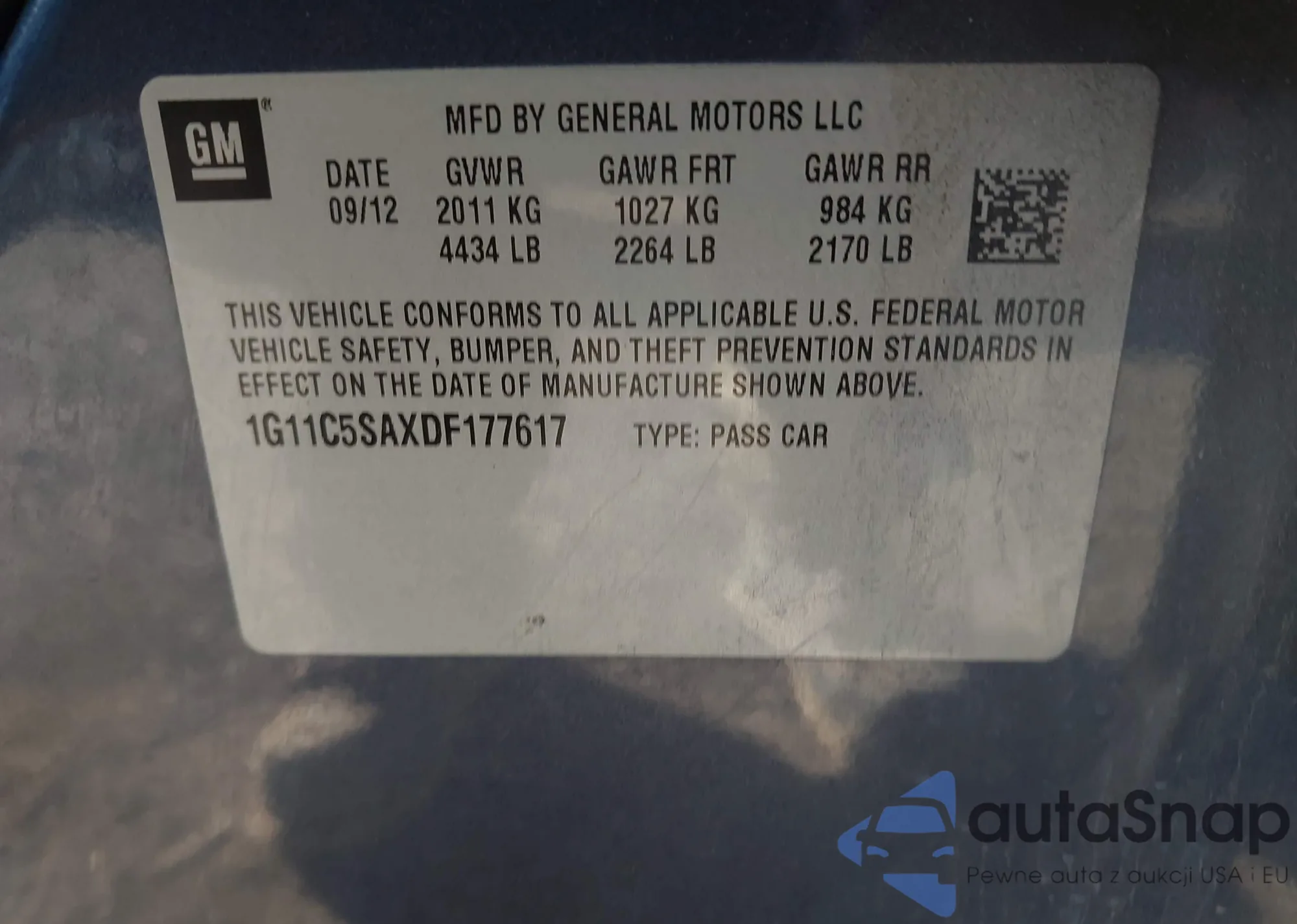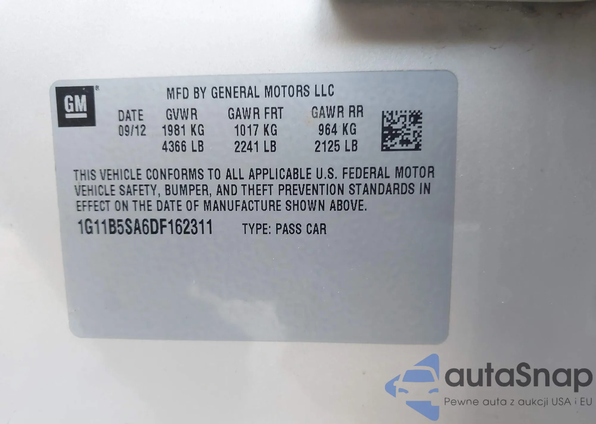 LOT: 44089763 VIN: 1G11B5SA4DF196005